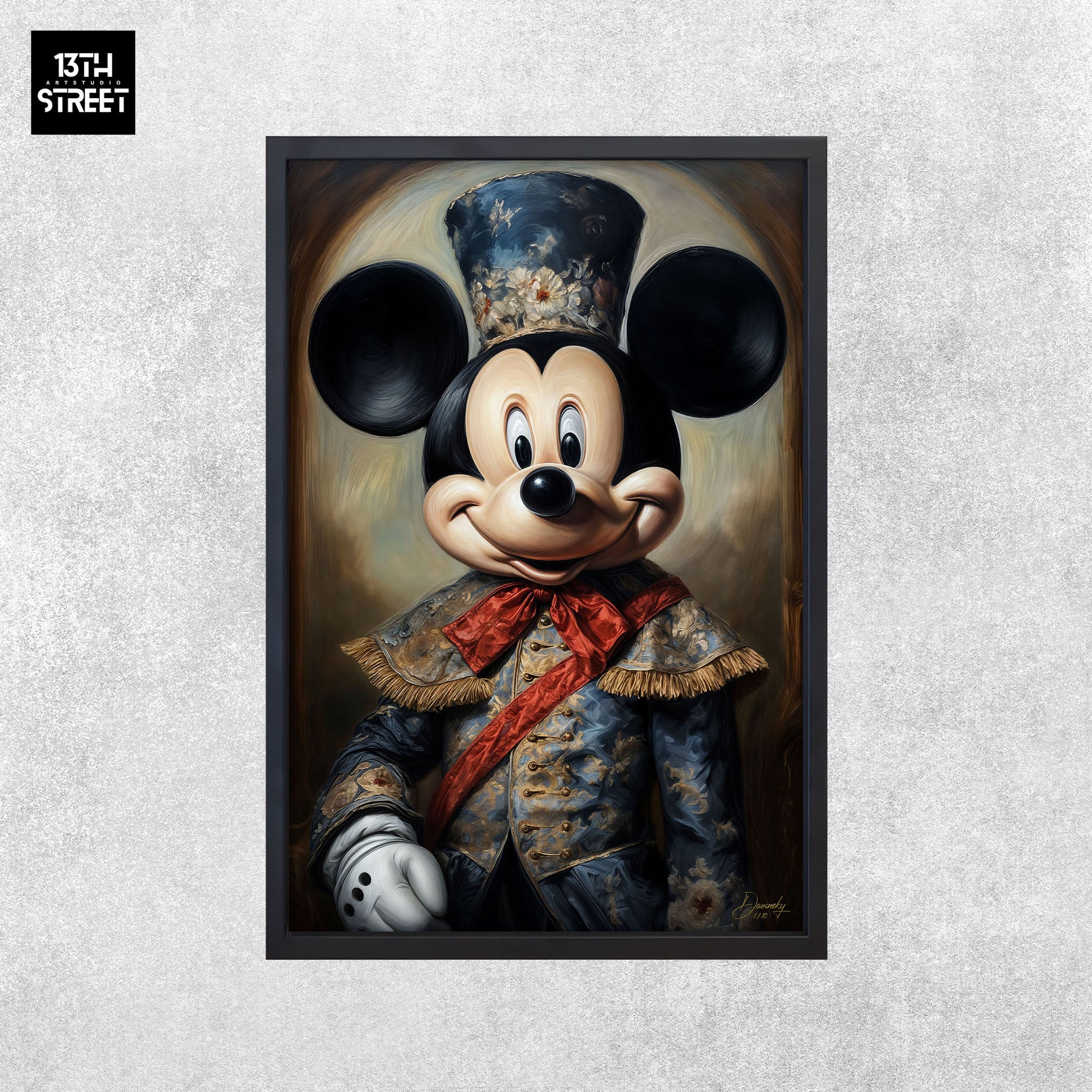 Entdecken Sie „ Lord Mickey Mouse “ des Künstlers Davinsky . Dieses bezaubernde Werk zeigt Mickey Mouse in einem raffinierten, von der Renaissance inspirierten Kostüm und fängt die Eleganz und den Charme eines Adligen dieser Zeit ein. „Lord Mickey Mouse“ ist eine limitierte Edition , die Ihrer Sammlung einen Hauch verspielter Raffinesse verleiht und den ikonischen Charakter von Mickey Mouse mit der Erhabenheit aristokratischer Kleidung verbindet. Tauchen Sie ein in Davinskys einzigartige und fantasievolle Welt, unterstützt von der Künstlergemeinschaft 13th Street Art . Verwandeln Sie Ihren Raum mit diesem Kunstwerk, das Nostalgie auf Luxus zelebriert und eine einzigartige Perspektive auf einen geliebten Charakter in einer königlichen Umgebung bietet.