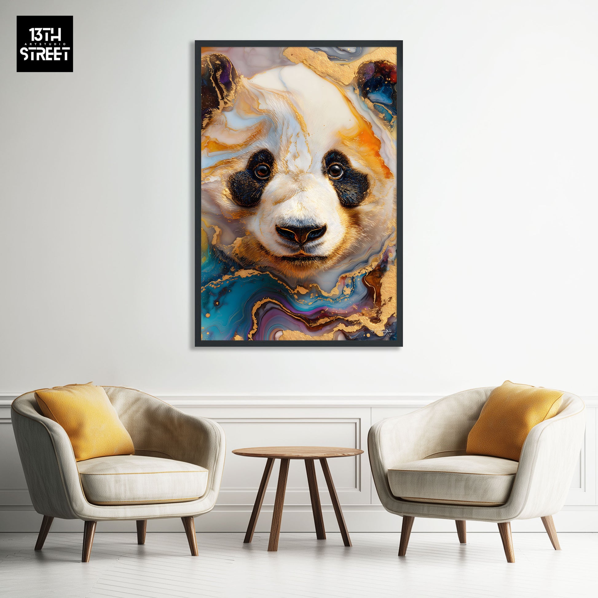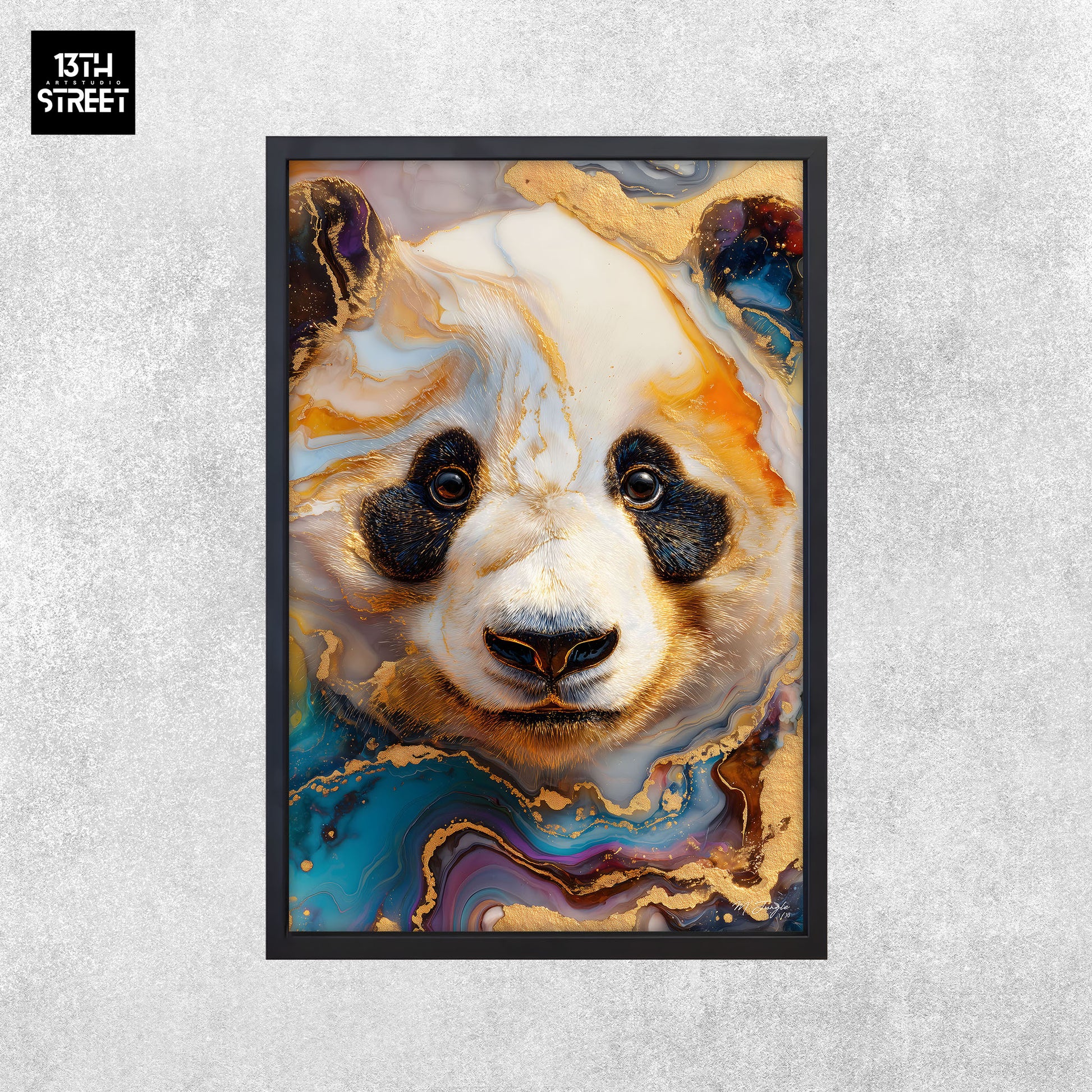 Découvrez "Douceur naturelle" par l’artiste Miss Jungle. Dans un univers artistique animalier, l’œuvre représente panda géant dans un portrait coloré aux nuances apaisantes, sublimé par un effet marbré apportant texture et harmonie à la composition. L’expression tendre de l’animal et la rondeur de ses formes traduisent une sérénité instinctive et une présence rassurante.