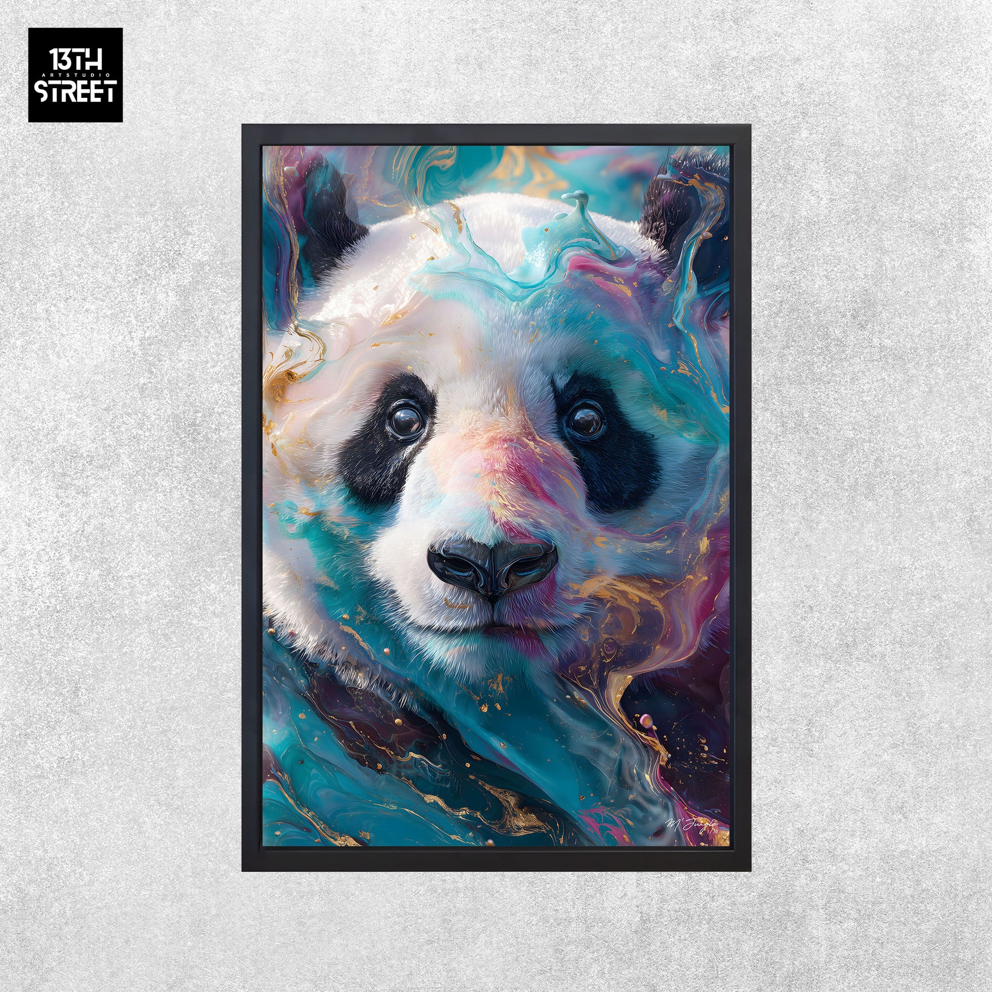 Découvrez "Paix expressive" par l’artiste Miss Jungle. Dans un univers artistique animalier, l’œuvre représente panda géant dans un portrait coloré aux nuances douces, sublimé par un effet marbré qui apporte texture et harmonie visuelle. L’expression calme de l’animal traduit la sérénité naturelle et l’équilibre émotionnel du sujet.