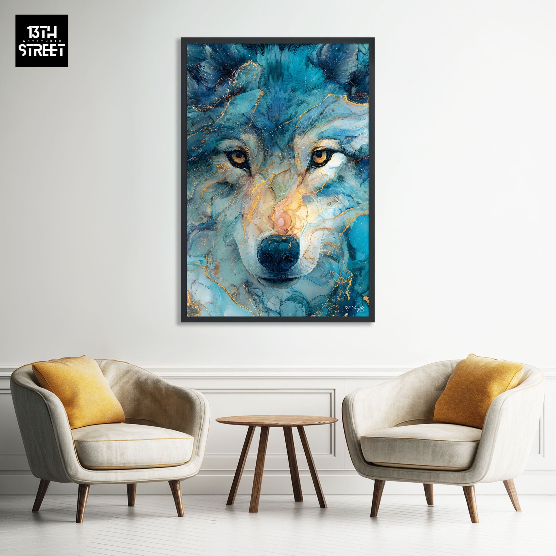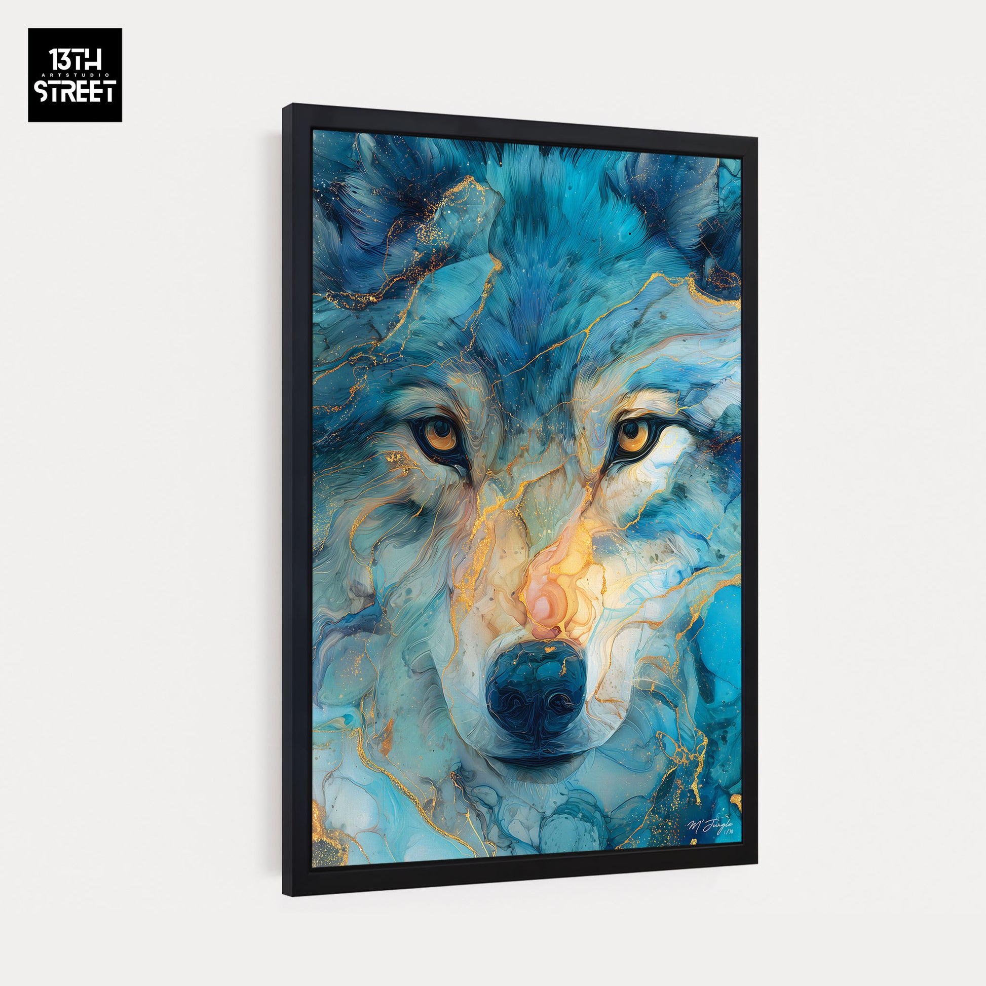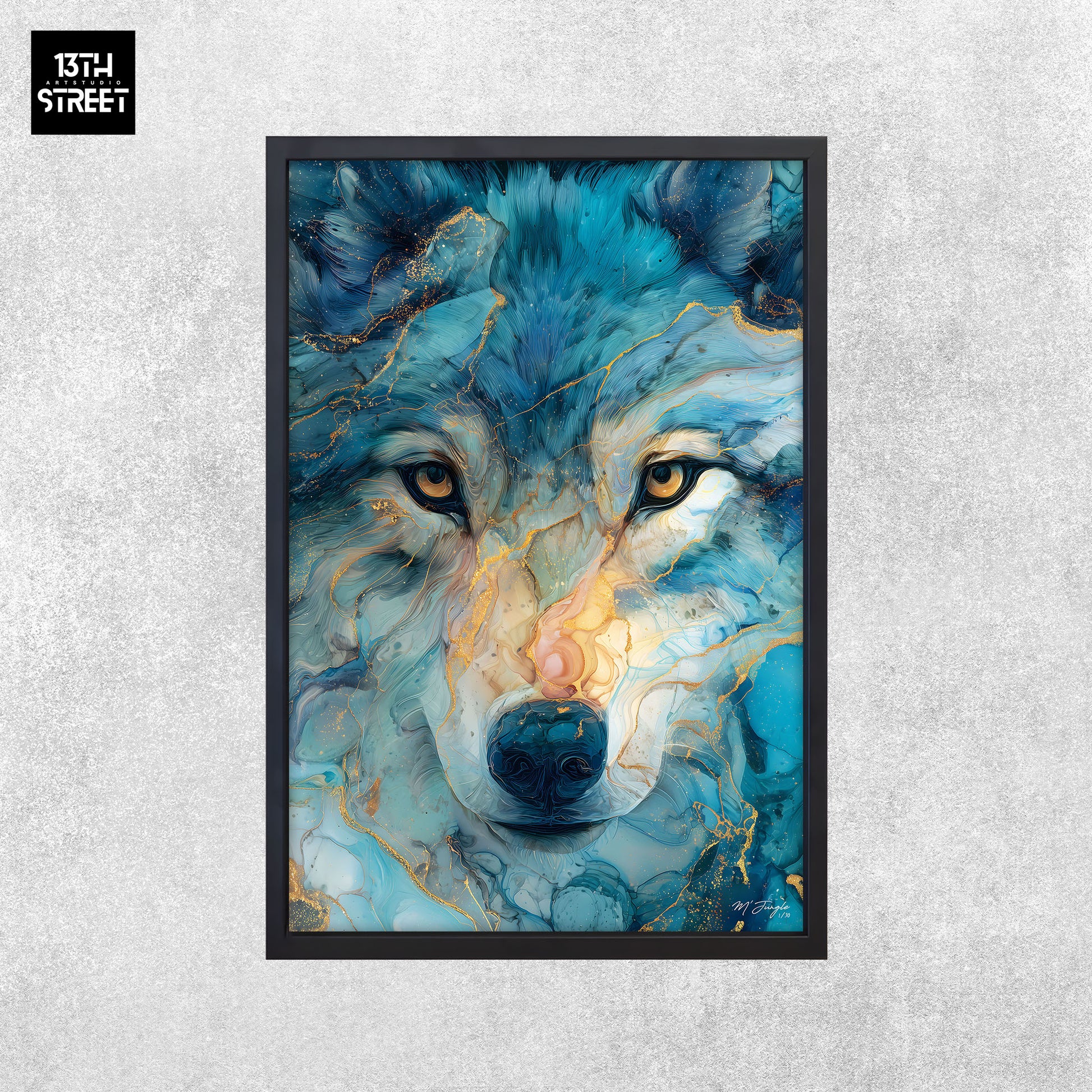 Découvrez "Sagesse silencieuse" par l’artiste Miss Jungle. Dans un univers artistique animalier, l’œuvre représente loup dans un portrait coloré aux nuances profondes, sublimé par un effet marbré qui apporte texture et intensité visuelle. Le regard du loup, calme et réfléchi, exprime l’instinct, la liberté et l’intelligence naturelle du prédateur.