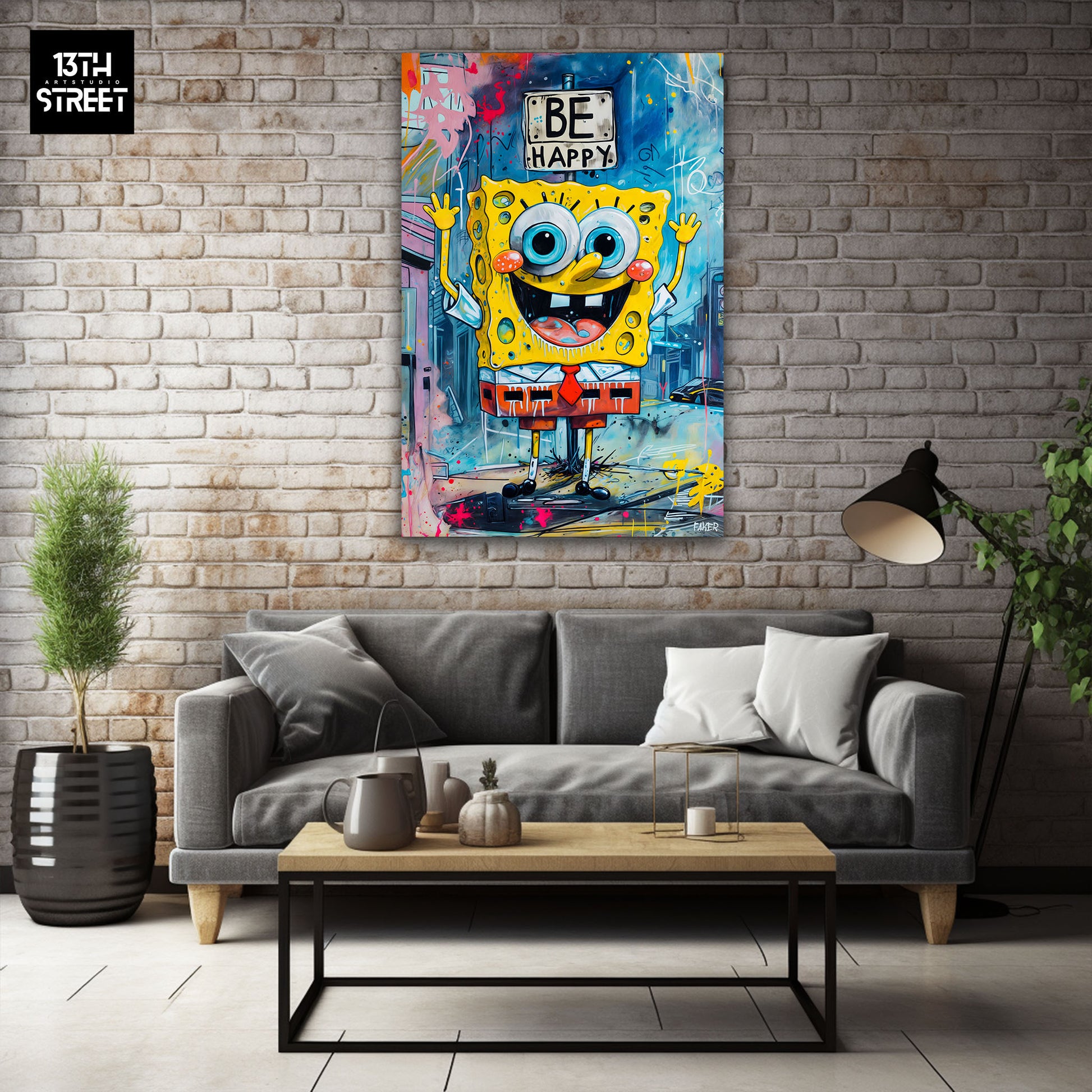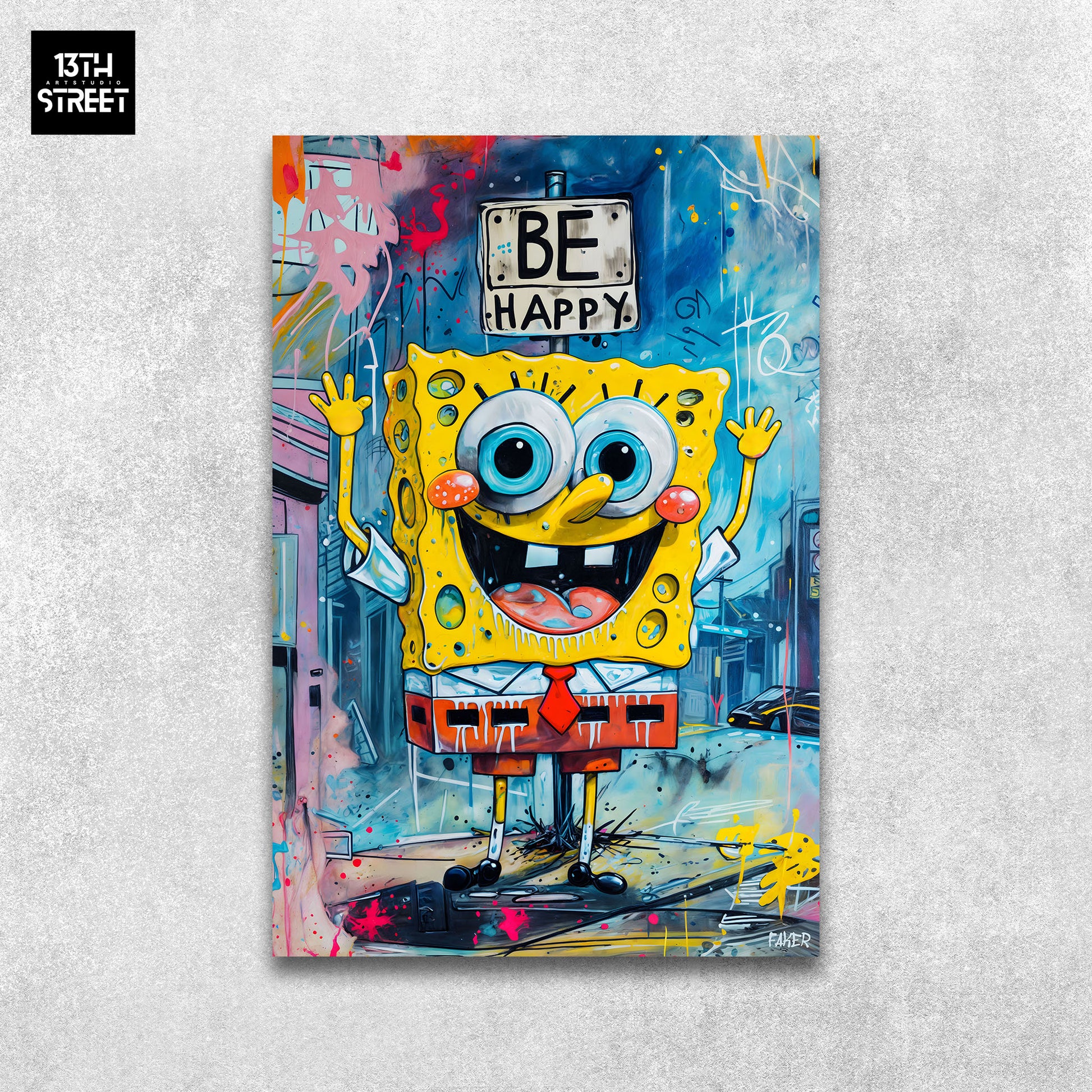 Discover " SpongeBob SquarePants Be Happy Day " by artist Faker . This canvas immortalizes SpongeBob in a joyful and vibrant interpretation. Bob is depicted with his famous smile and optimistic attitude, all enhanced by street art elements that infuse the work with a modern and colorful energy. The vibrant colors and bold graphic details capture the character's playful spirit while adding a contemporary touch to his underwater world. "SpongeBob SquarePants Be Happy Day" is an Artwork that celebrates joy and positivity, bringing a touch of freshness and vibrancy to your space. Supported by the artistic community 13th Street Art , this unique canvas infuses your collection with a dose of happiness and modern style.