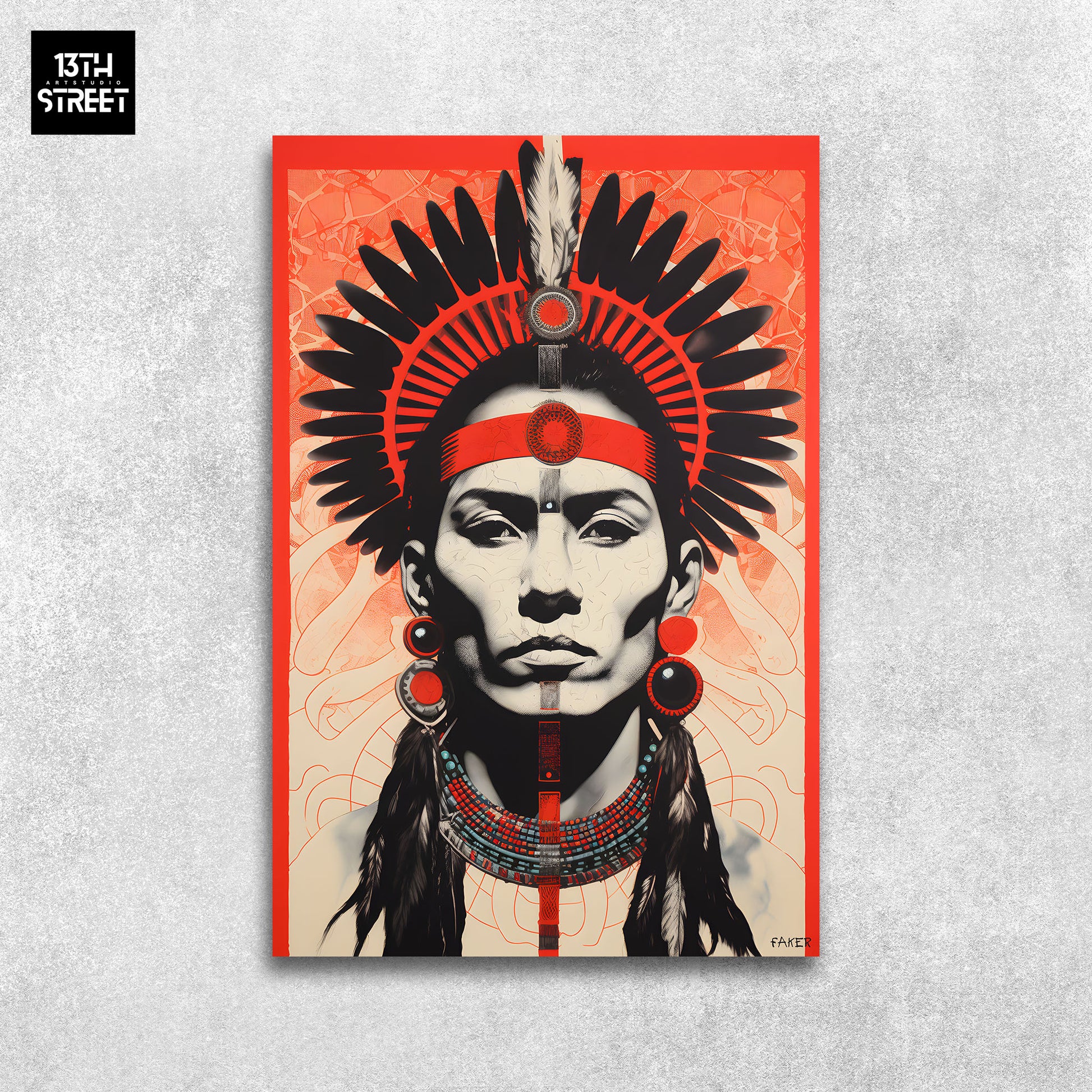 Discover " Earth Spirit " by artist Faker . This painting features a striking portrait of an Apashe, capturing the spirit and deep connection with nature. Earth Spirit is an Artwork that embodies the cultural richness and ancestral wisdom of Indigenous peoples. Explore Faker's creative talent, supported by the artistic community of 13th Street Art , and be immersed in the power and beauty of this tribute to the spirit of the earth.