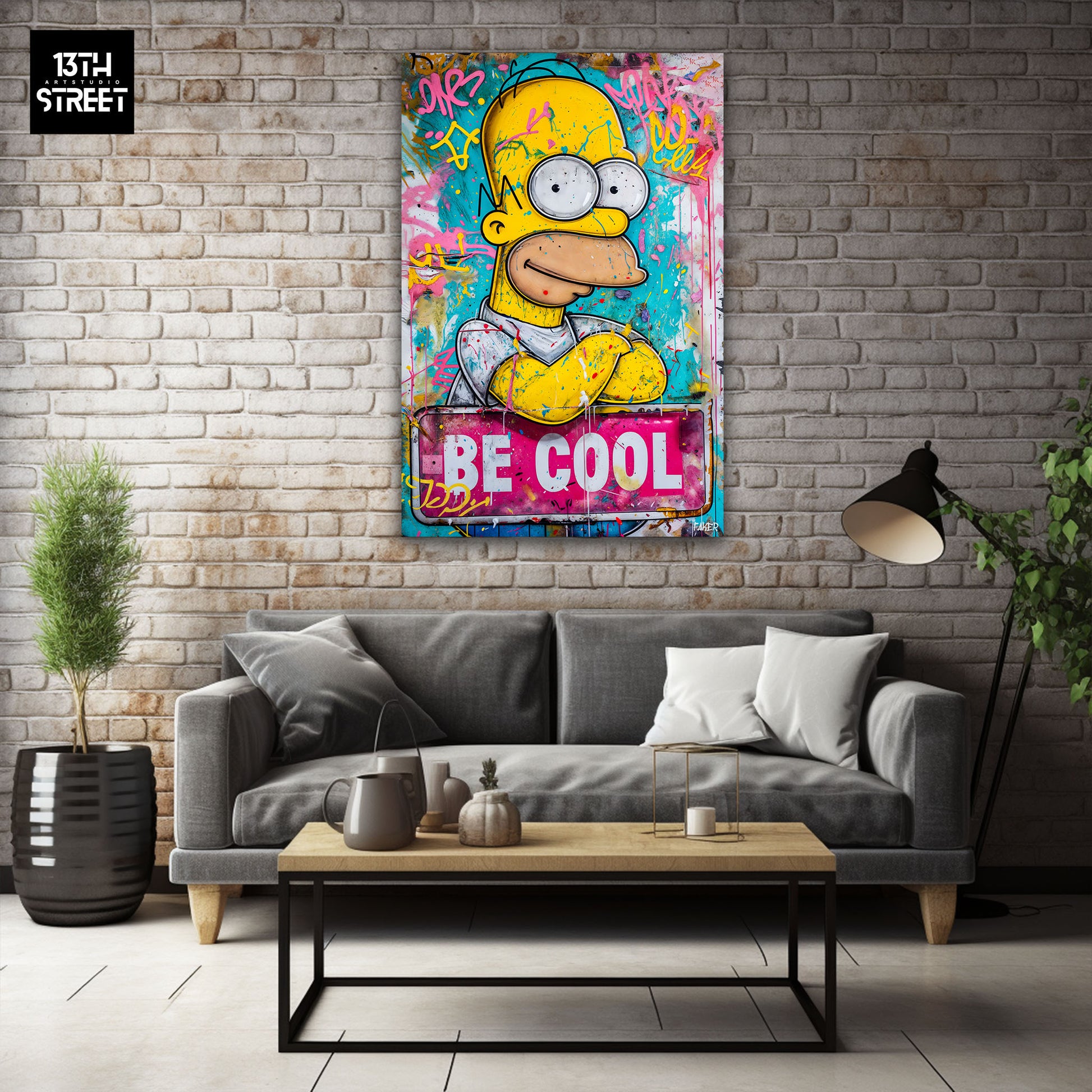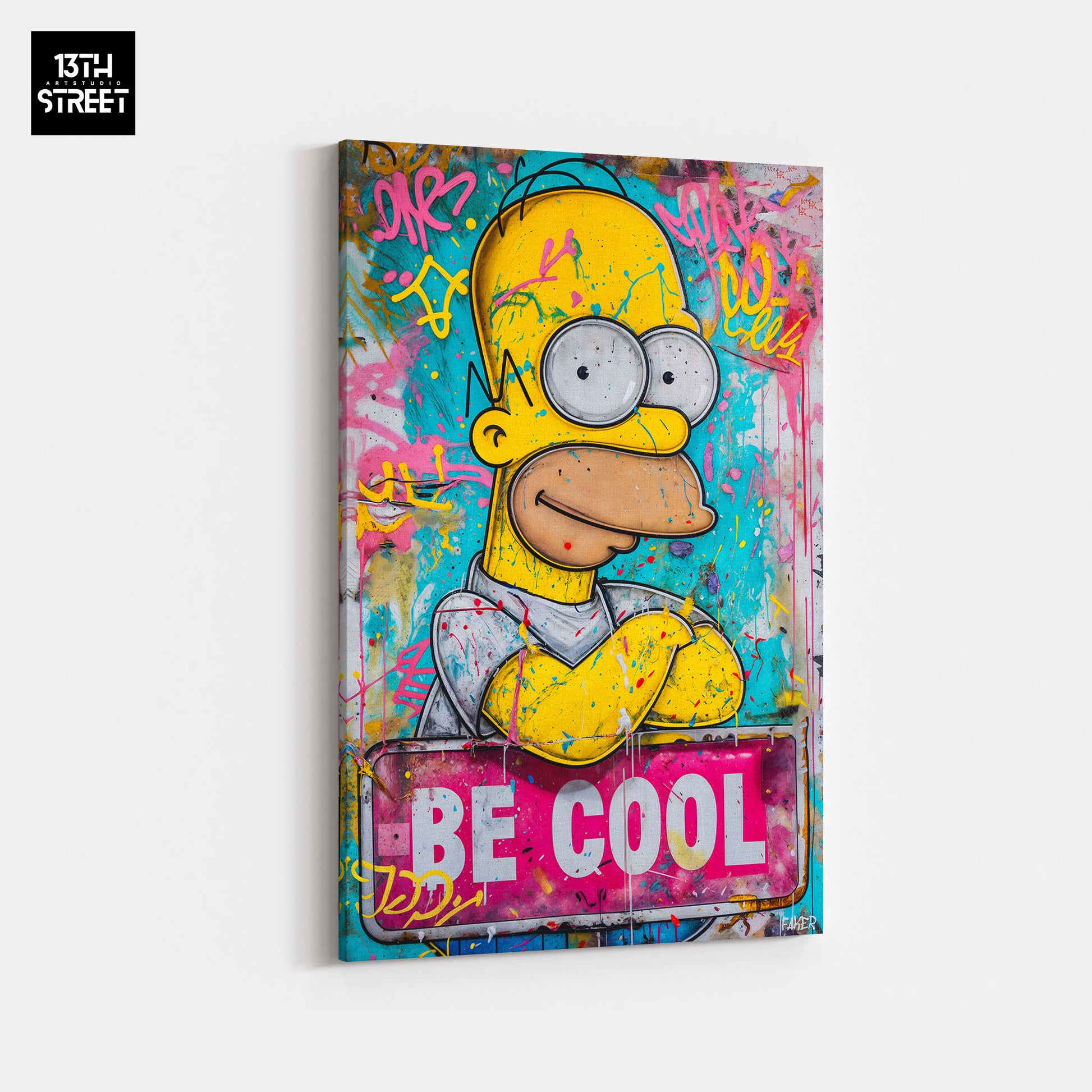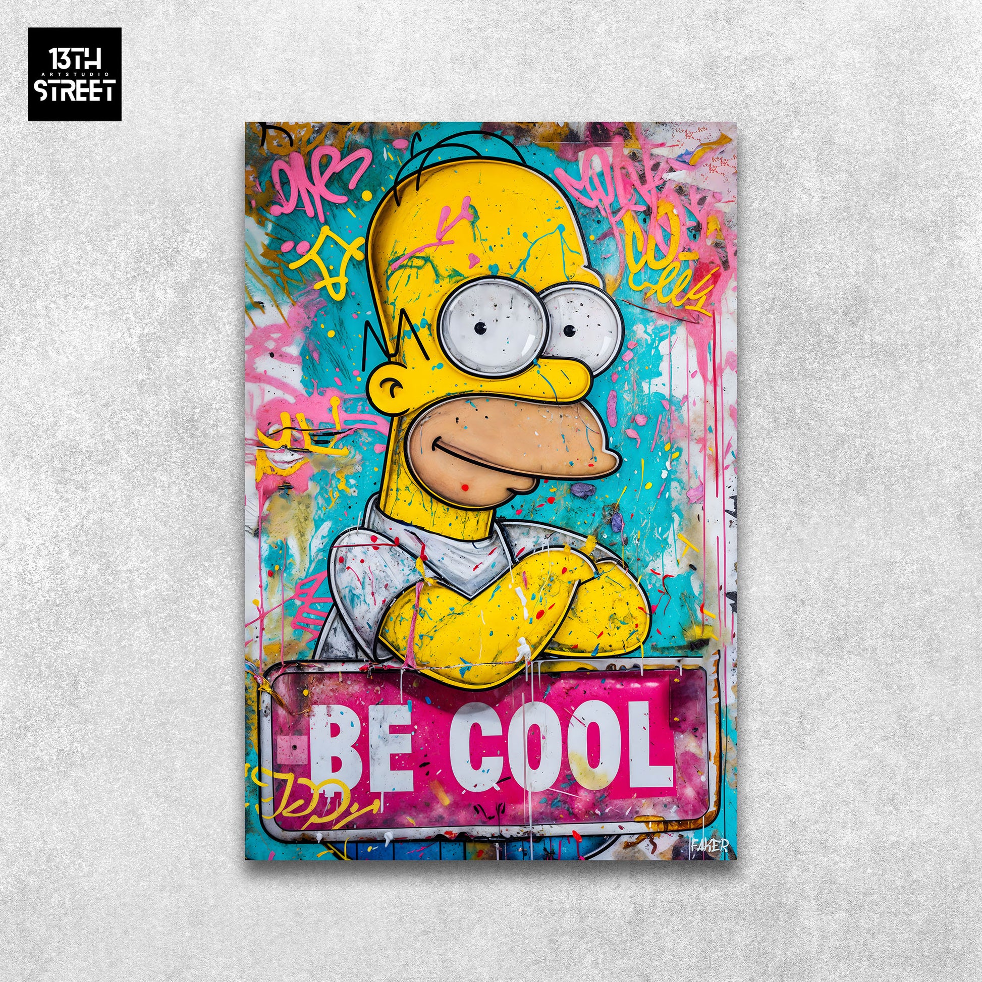 Check out " Homer Simpson Be Cool " by artist Faker . This canvas features Homer Simpson in a relaxed and stylish pose, embodying modern cool. Homer is depicted with street art elements that add a vibrant and contemporary dimension to his iconic appearance. . Bold colors and vibrant patterns capture the essence of the character while giving him a refreshing, urban look. "Homer Simpson Be Cool" is an Artistic Work that fuses humor and modernity, offering a touch of fun and sophistication to your space. Supported by the 13th Street Art community, this unique canvas infuses positive energy and distinctive style into your collection.