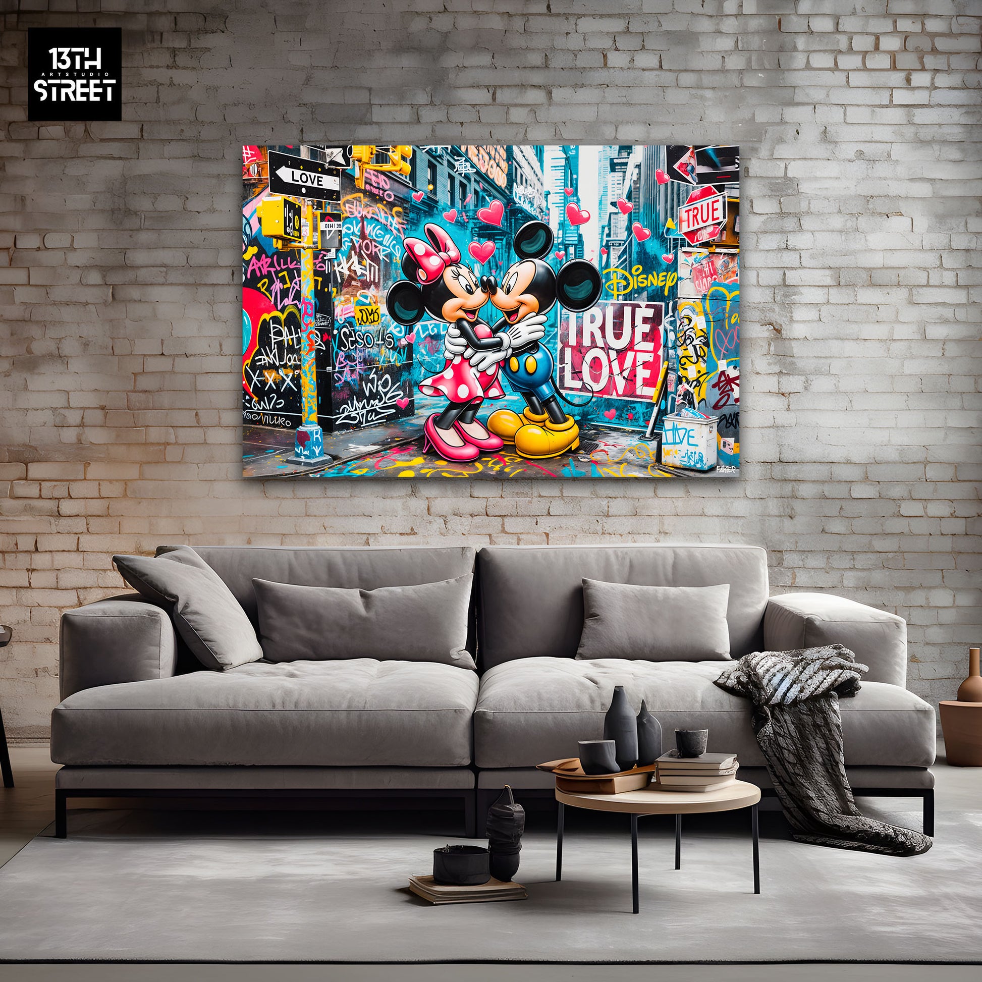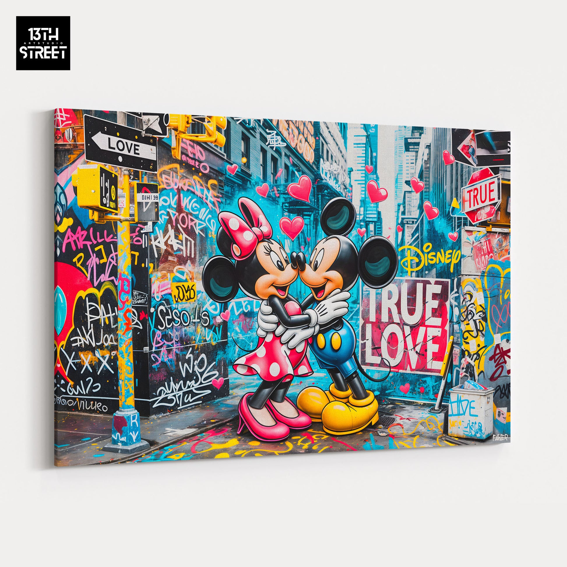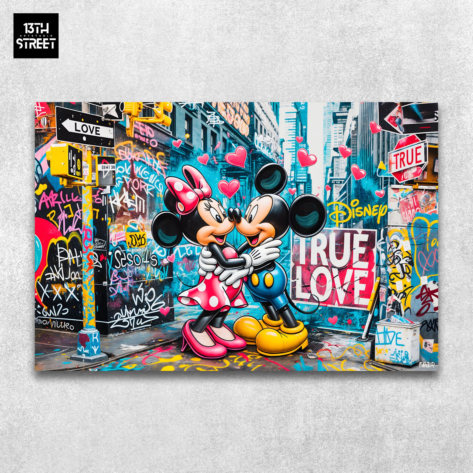 Discover " Mickey and Minnie True Love City " by artist Faker . This artwork celebrates the iconic love between Mickey and Minnie Mouse, reinterpreted with a modern and urban twist. In a vibrant street art style, Faker captures the essence of their timeless romance, while infusing elements of pop culture. The vibrant colors and striking details infuse energy into this tender depiction. "Mickey and Minnie True Love city" is an Artwork that marries passion and elegance, creating a perfect piece for lovers of art and pop culture. Dive into Faker's creative world, supported by the artistic community 13th Street Art , and let this canvas add a touch of love and energy to your collection.