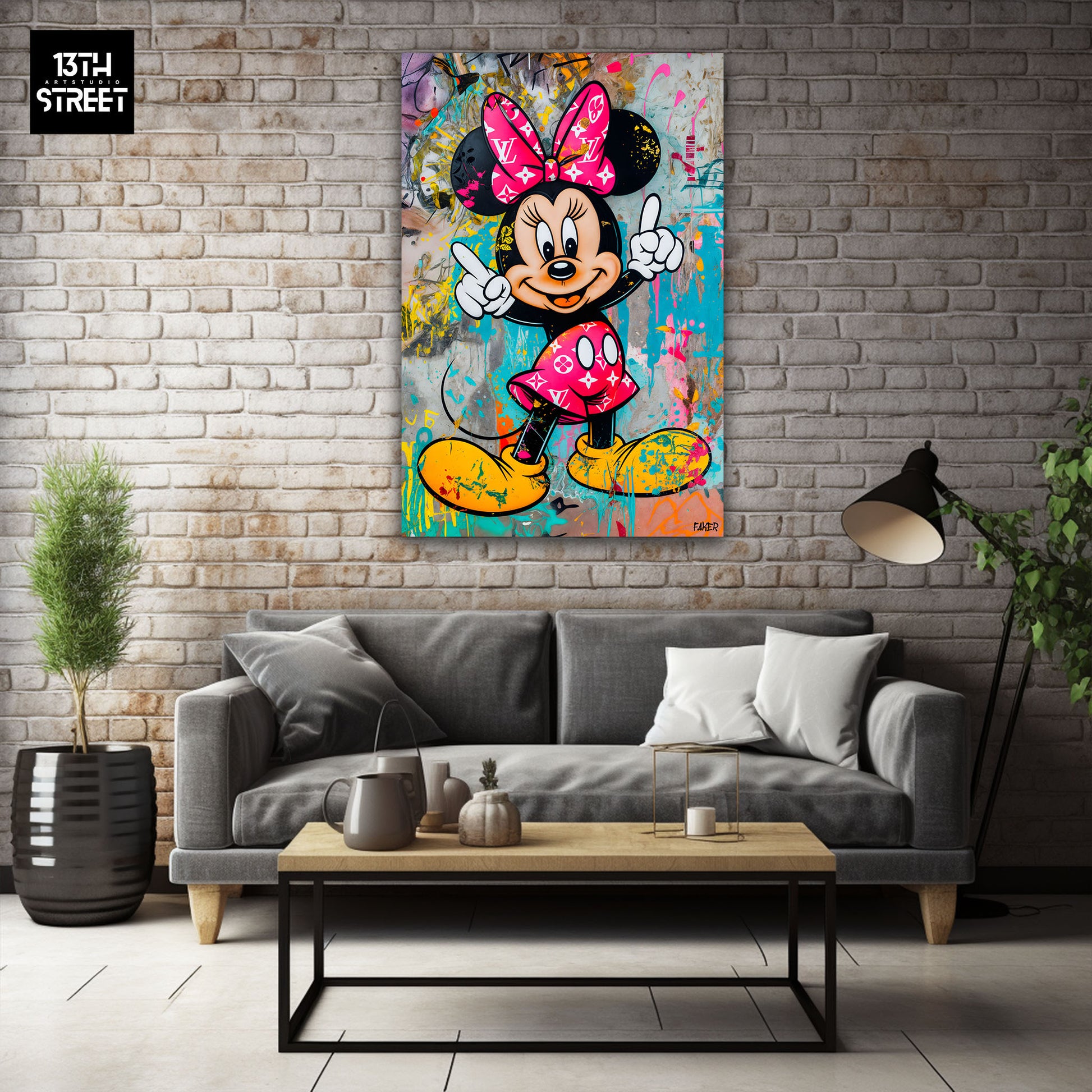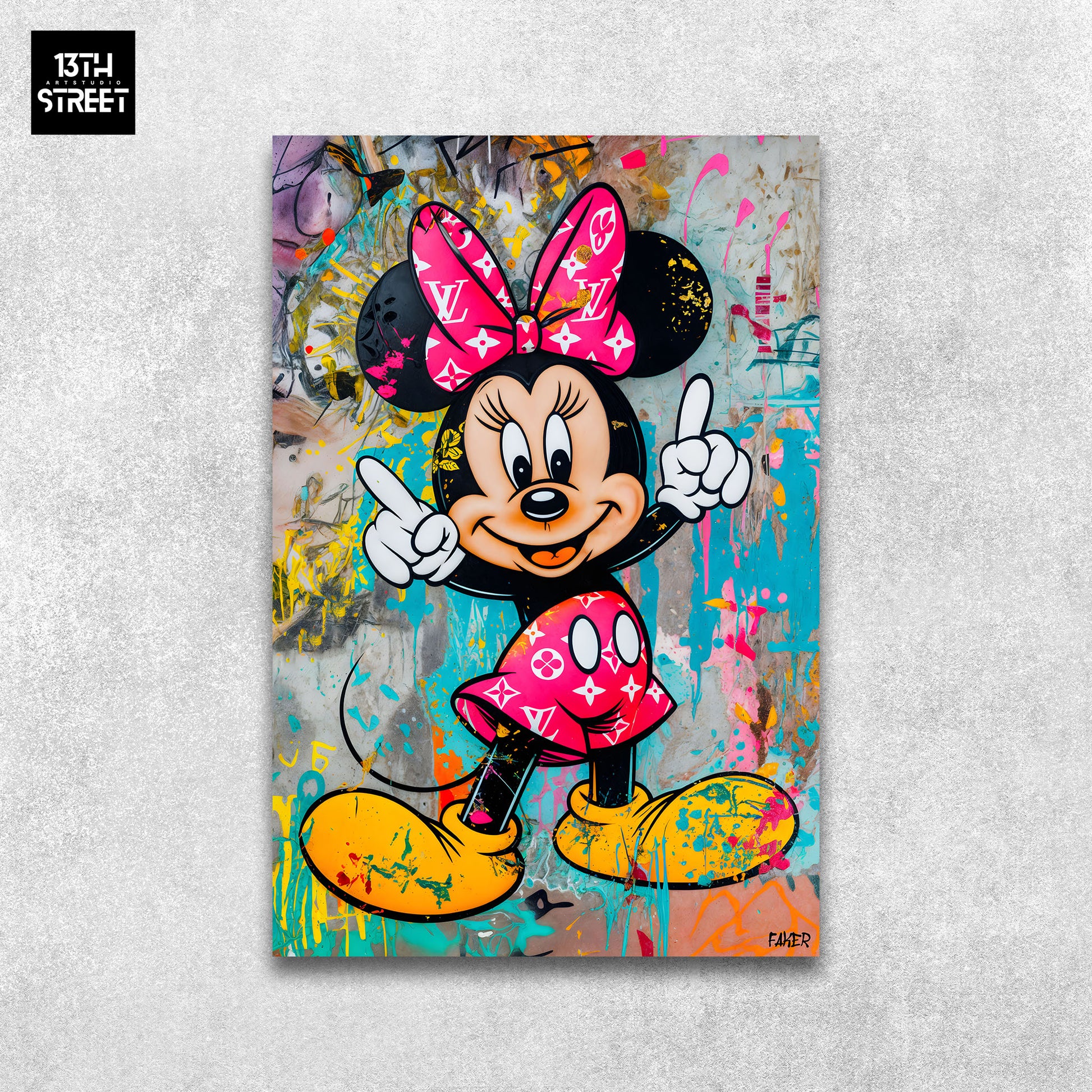 Discover " Minnie Pretty Louis Vuitton " by artist Faker . This canvas reimagines Minnie Mouse with a new elegance, immersing her in the refined world of Louis Vuitton. Dressed in luxurious patterns and adorned with sophisticated accessories, Minnie is presented with contemporary grace, blending the character's classic charm with a touch of modern glamour. The vibrant colors and elegant details capture both beauty and sophistication, offering a fresh and stylish take on Minnie. "Minnie Pretty Louis Vuitton" is an Artwork that combines fashion and pop culture with a touch of elegance, bringing a chic and innovative dimension to your collection. Supported by the artistic community 13th Street Art , this unique canvas infuses your space with a burst of luxury and charm.