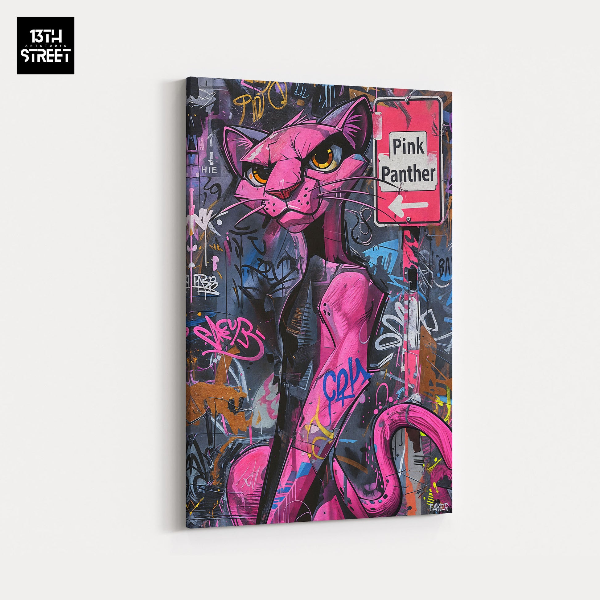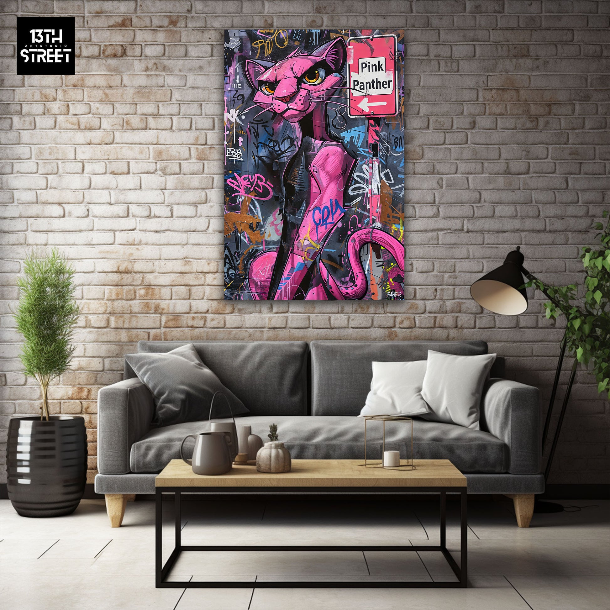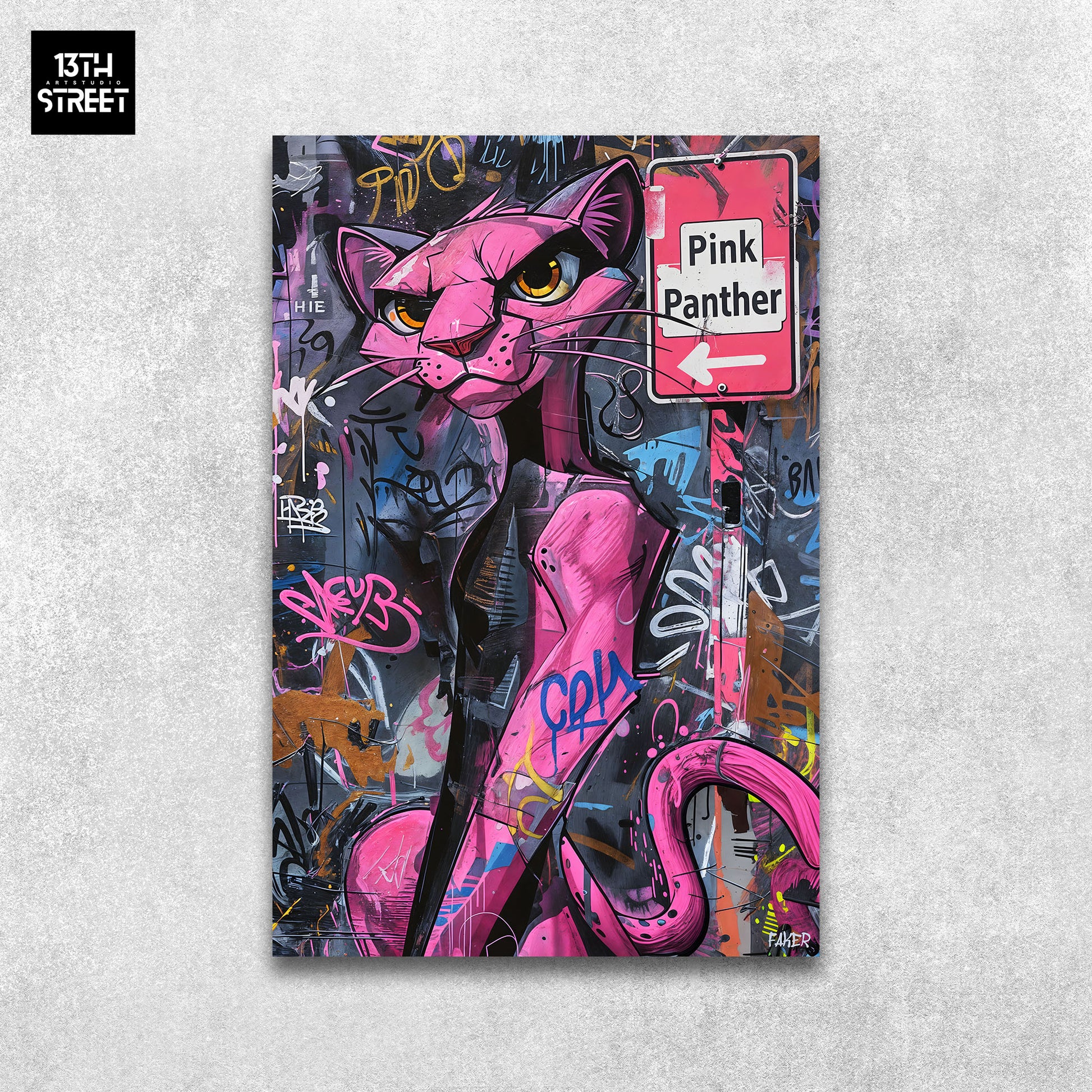 Discover " Pink Panther City " by artist Faker . This canvas immerses the famous Pink Panther in a vibrant urban setting, blending the iconic charm of the character with the energy of street art. The canvas features the Pink Panther in a modern urban setting, with vibrant colors and dynamic patterns that capture the liveliness and mystery of the character. "Pink Panther City" is an Artwork that combines elegance and contemporary style, transforming the Pink Panther into a fascinating figure in the urban landscape. Supported by the artistic community 13th Street Art , this unique canvas brings a touch of sophistication and modernity to your space, while celebrating the boldness and glamour of street art.