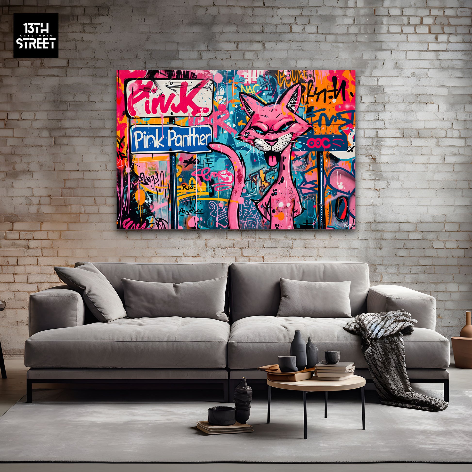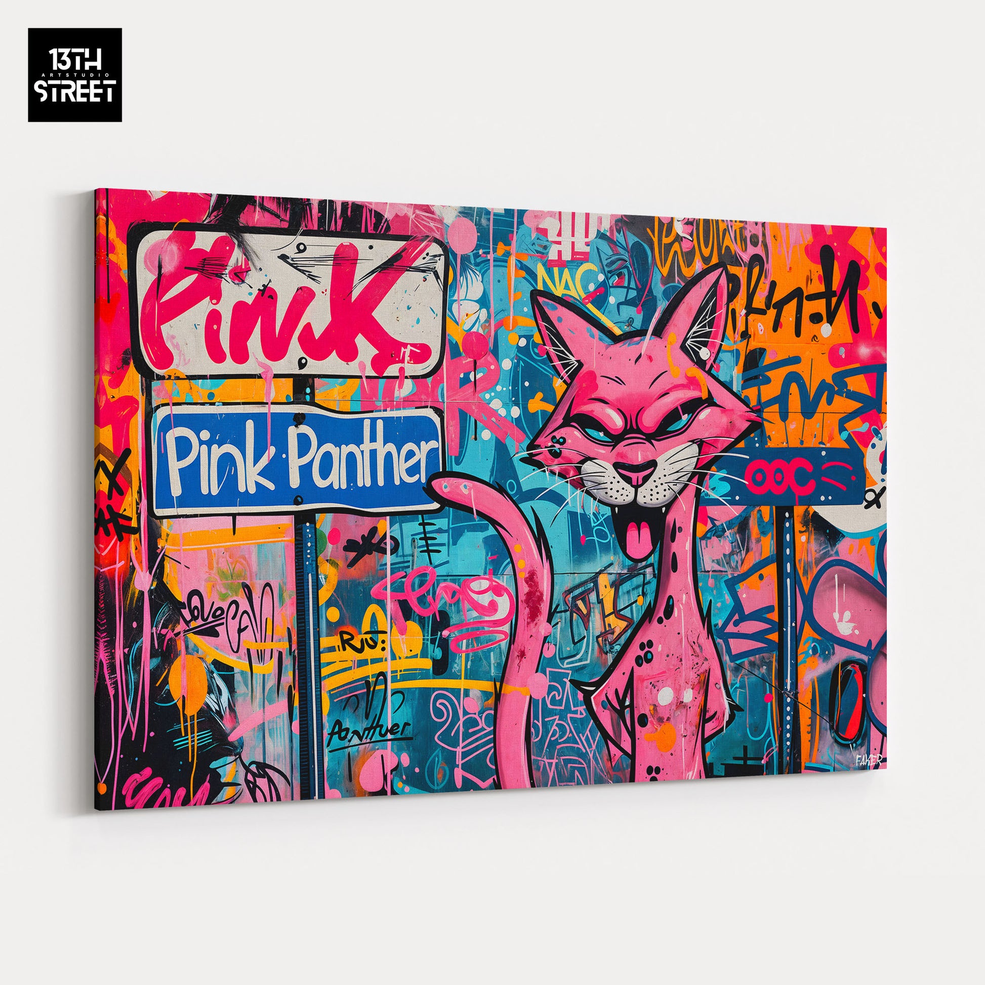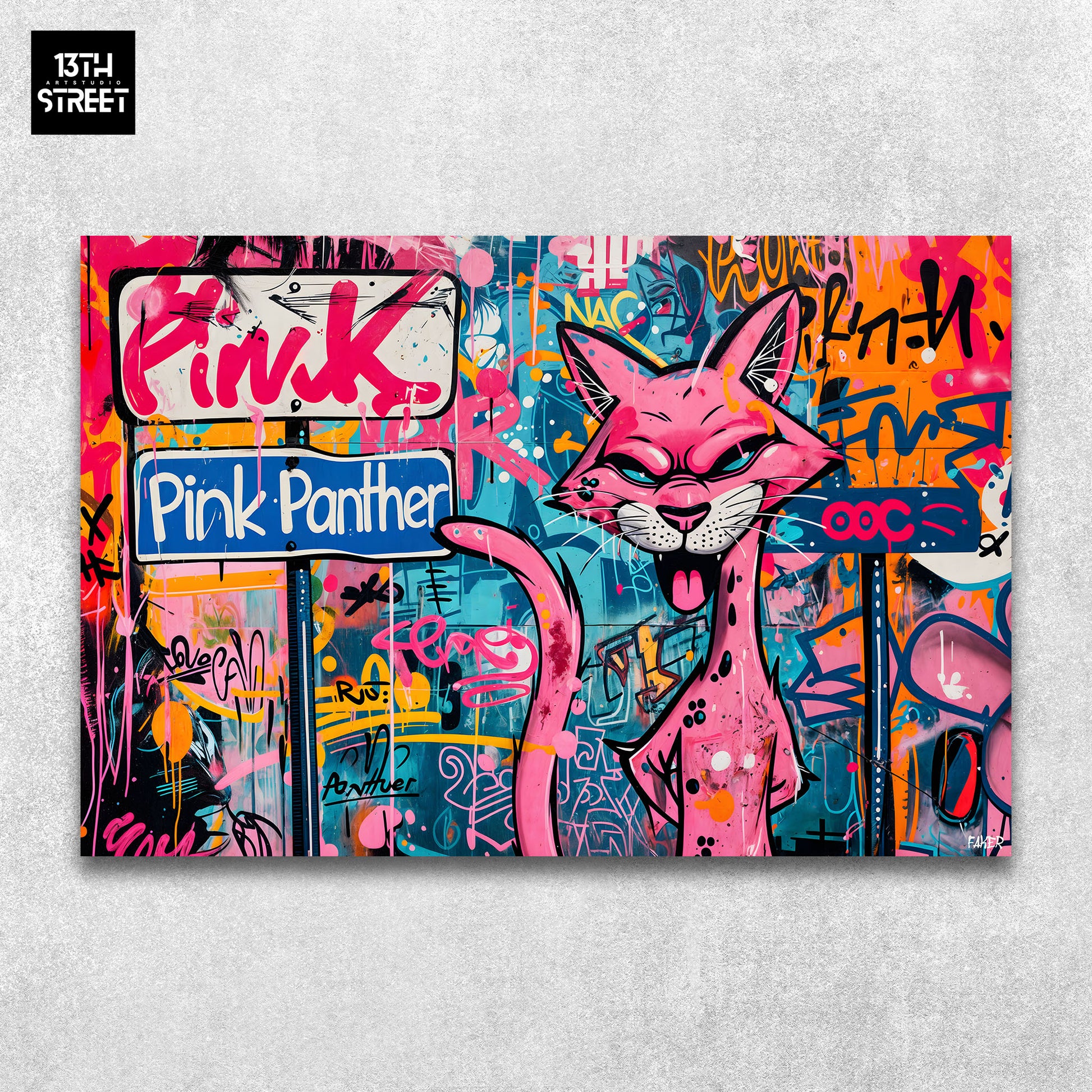 Discover " Pink Panther Vandal " by artist Faker . This canvas reimagines the famous Pink Panther with a bold street art twist. Armed with a rebellious attitude, the Pink Panther is transformed into an urban vandal figure, playing with graffiti elements and vibrant colors. Faker mixes the classic elegance of the character with the vibrant energy of the street, creating a work that is as intriguing as it is dynamic. "Pink Panther Vandal" is an Artwork that combines timeless charm with subversive modernity, bringing a touch of irreverence and style to your collection. Supported by the artistic community 13th Street Art , let this canvas revolutionize your space with its bold personality.