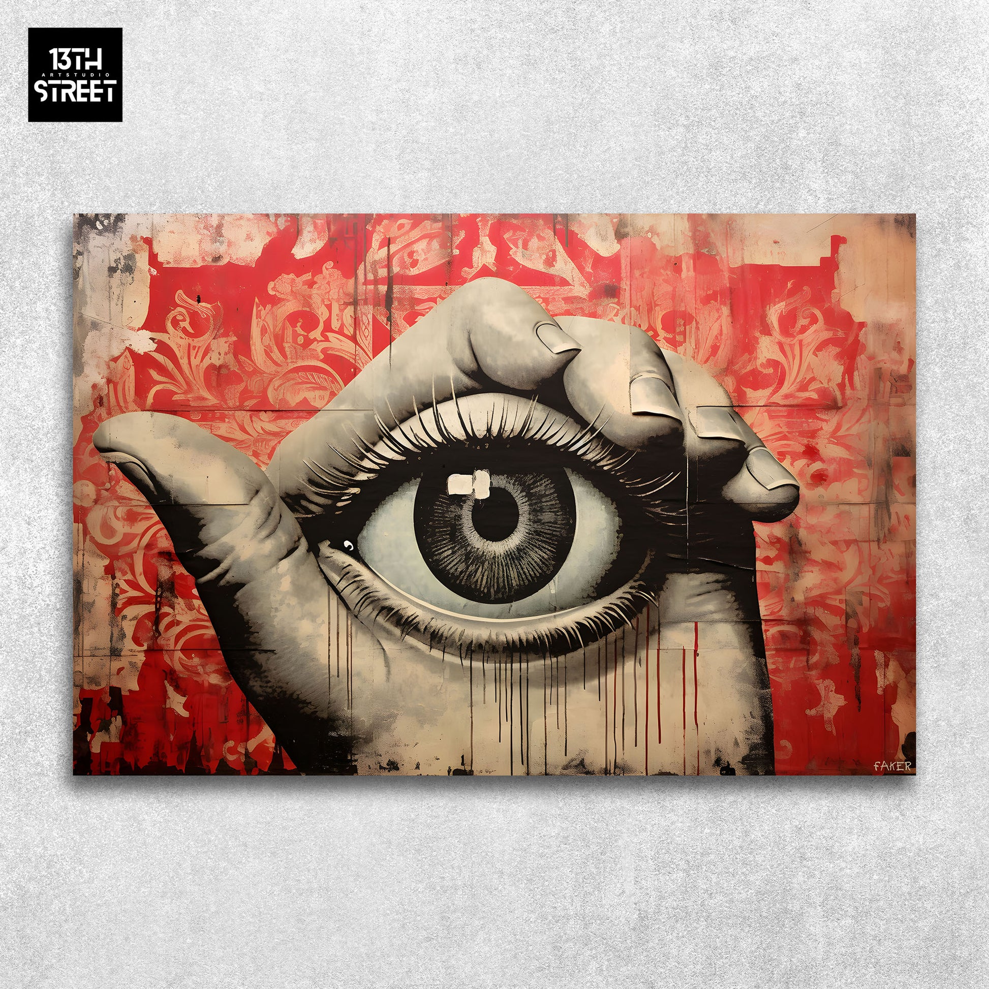 Discover " Regard Des Vérités " by artist Faker . This captivating canvas features an eye in a hand, evoking a deep exploration of inner truths. "Regard Des Vérités" is an Artwork , granting a special exclusivity to your collection. Immerse yourself in the creative universe of Faker, supported by the artistic community 13th Street Art . Transform your space with a dose of emotion and reflection thanks to this canvas that encourages a visual exploration of inner truths.