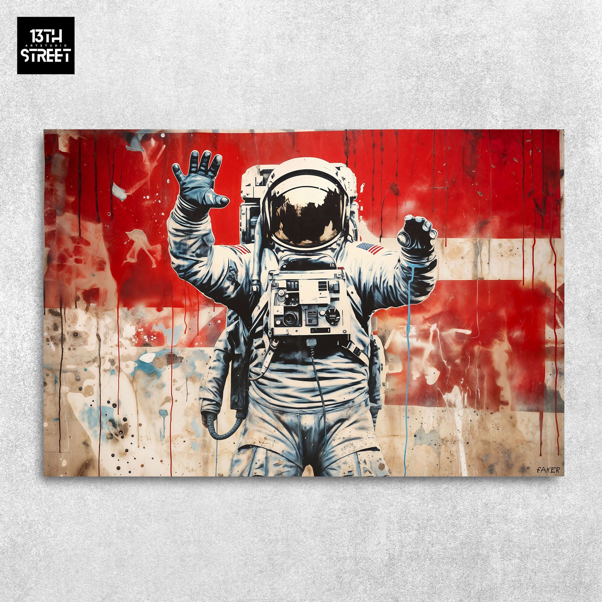 "Discover " Welcome To The Moon " by artist Faker . This captivating canvas features the first photoshoot of a cosmonaut's arrival on the moon with a unique artistic perspective. "Welcome To The Moon" is a Special Artwork , bringing a special exclusivity to your collection. Immerse yourself in Faker's creative universe, supported by the artistic community 13th Street Art . Transform your space with a dose of emotion and wonder with this canvas that celebrates the spirit of cosmic exploration and welcoming to our natural satellite."