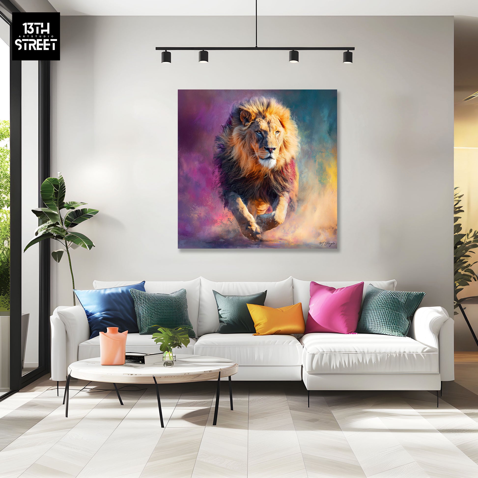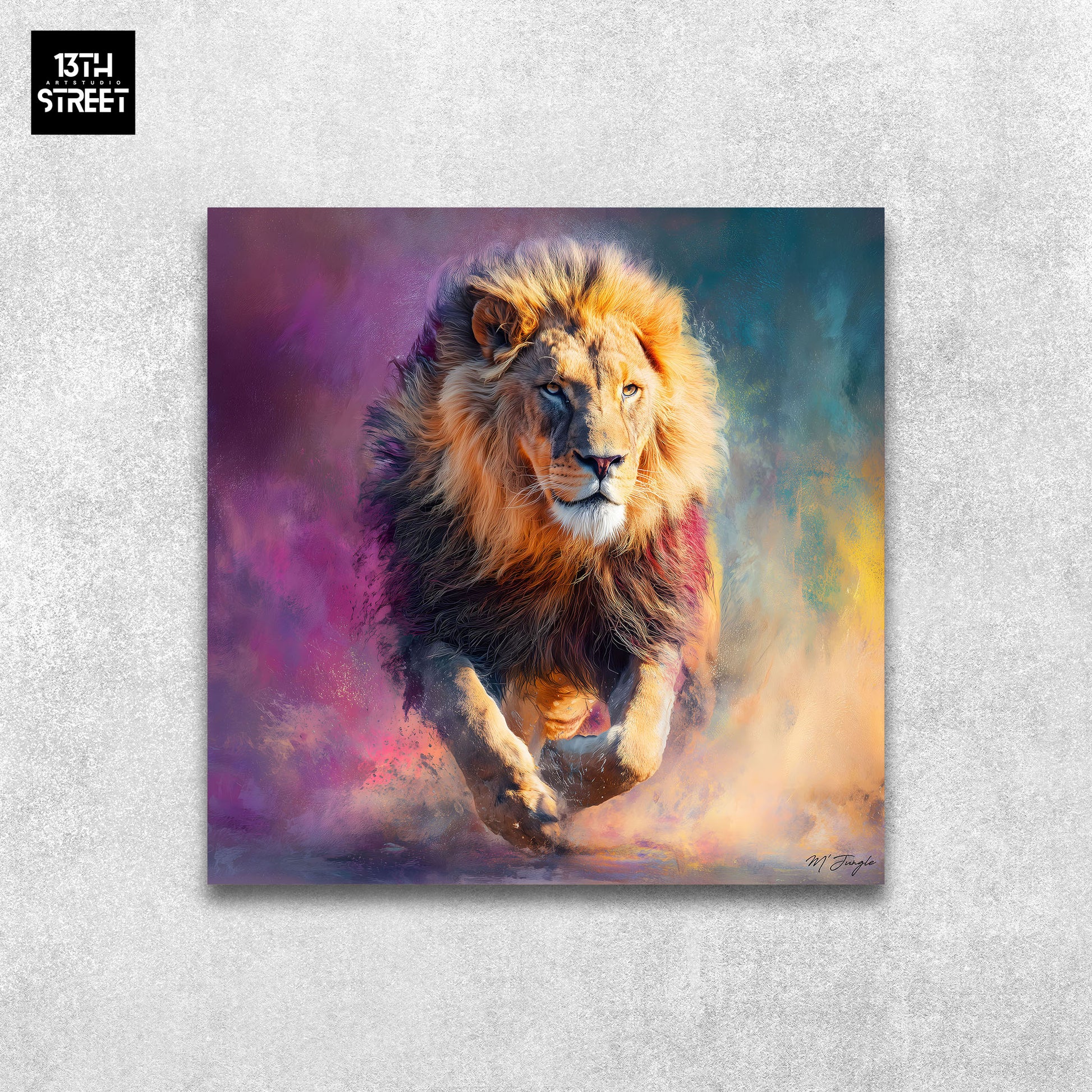 Œuvre artistique "Le rugissement intérieur" symbolise la puissance contenue et la royauté sauvage à travers un langage visuel animalier contemporain. Le lion devient le sujet principal de l’œuvre, incarnant la dominance naturelle et l’expression graphique propre à l’univers de Miss Jungle.