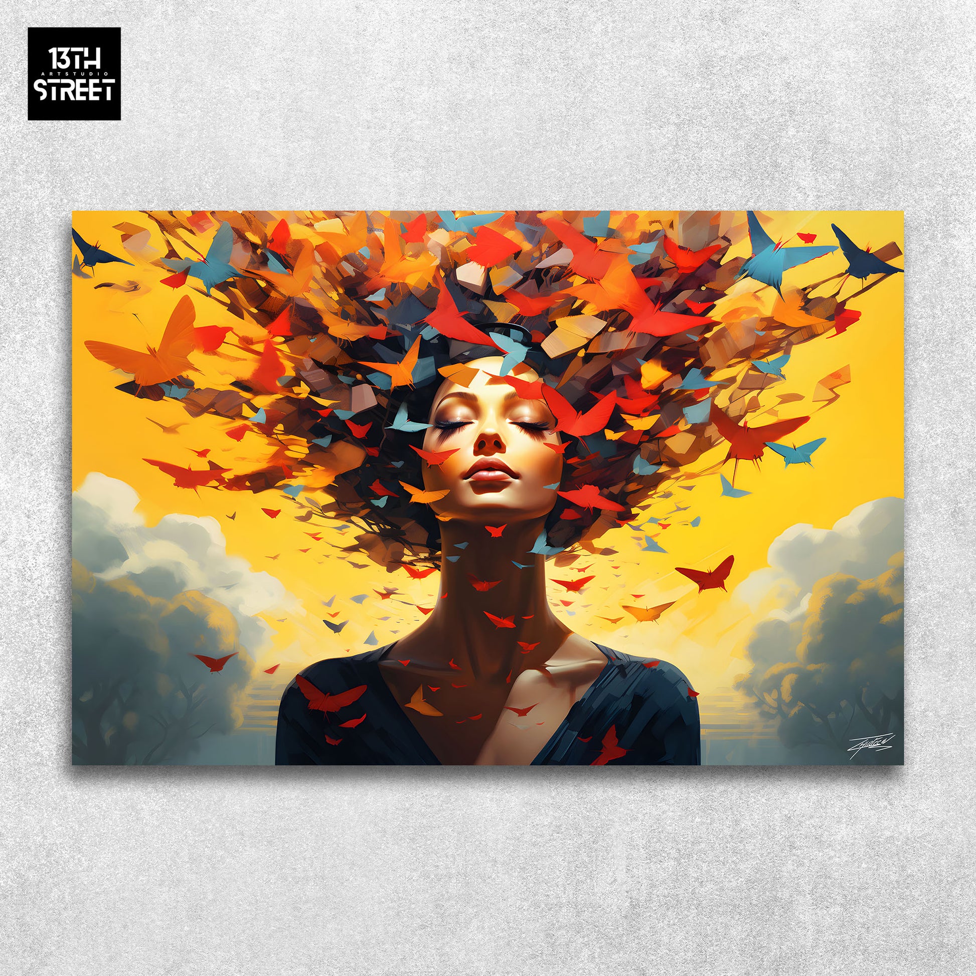 "Discover " Free Radiance " by artist Thirteen . This canvas print evokes the fleeting tenderness of ephemeral sweetness, capturing the essence of urban contemporary art with vibrant colors and captivating expression. " Free Radiance" is an Artwork , adding exclusivity to your purchase. Explore Thirteen's distinctive creativity, supported by the 13th Street Art artistic community. Add a touch of emotion to your interior now."
