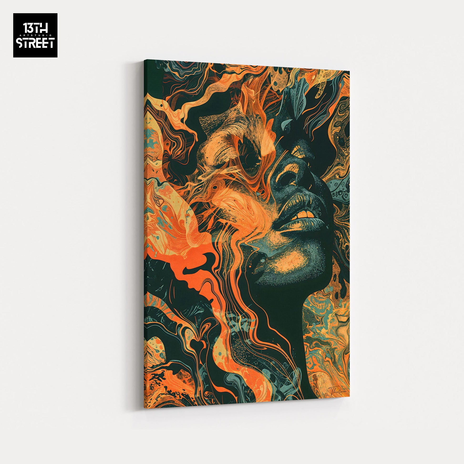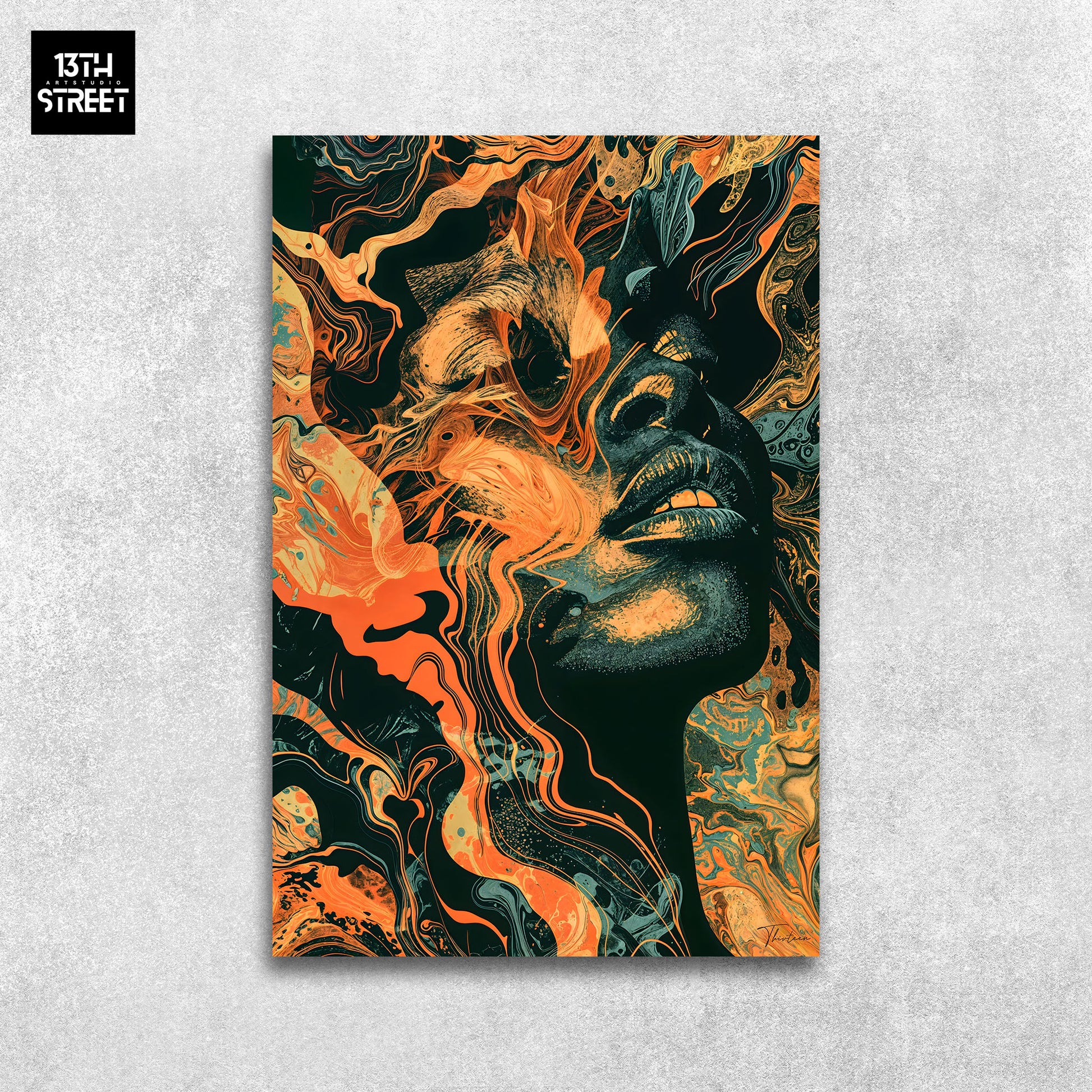 Discover " Fusion of the Senses " by artist Thirteen . This captivating portrait explores the harmony between emotions and perceptions through a rich and immersive composition. "Fusion of the Senses" reveals a woman whose expression and vibrant colors blend to create a deep and intriguing sensory experience. This Artwork adds a touch of sophistication and mystery to your space. Immerse yourself in the creative universe of Thirteen, supported by the artistic community 13th Street Art . Transform your interior with this work that invites you to celebrate the subtle union of emotions and sensations through a captivating portrait.