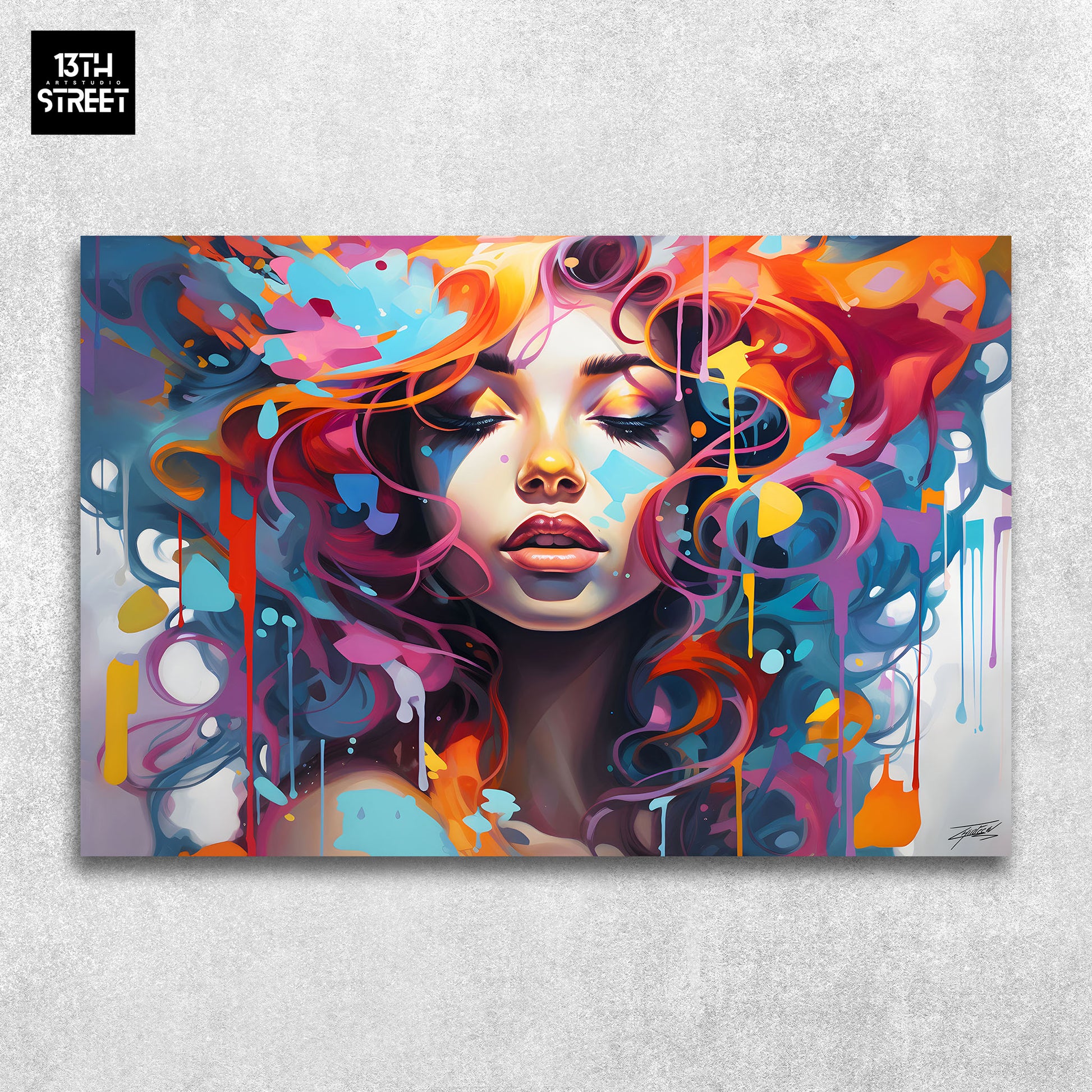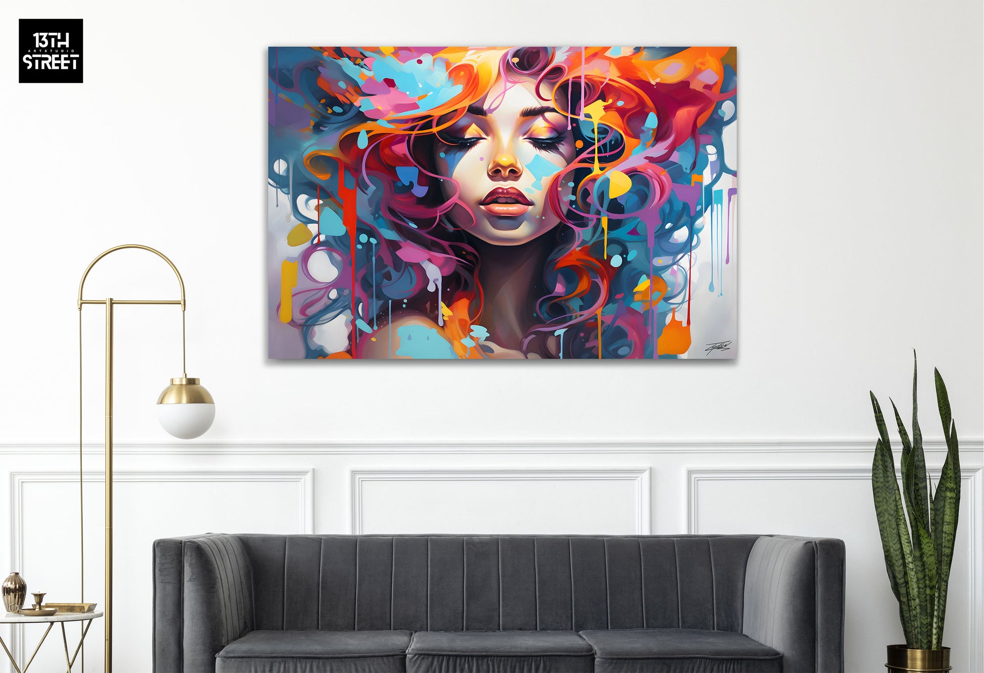 Discover " Louna " by artist Thirteen . This canvas print evokes the captivating serenity of Louna, capturing the essence of urban contemporary art with vibrant colors and captivating expression. "Louna" is a Fine Art Print , adding exclusivity to your purchase. Explore Thirteen's distinctive creativity, supported by the 13th Street Art community. Add a touch of emotion to your home now.