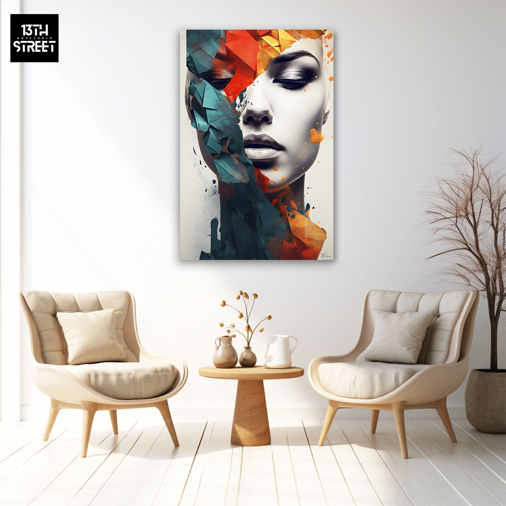 Discover " Silent Muse " by artist Thirteen . This captivating canvas features a portrait of a woman in a colorful, fractal interpretation, evoking a silent muse enveloped in abstraction and the infinite beauty of patterns. "Silent Muse" is an Artwork , bringing a special exclusivity to your collection. Immerse yourself in the creative universe of Thirteen, supported by the artistic community 13th Street Art . Transform your space with a dose of contemplation and wonder thanks to this canvas that embodies the beauty and complexity of femininity through fractal shapes and vibrant colors.