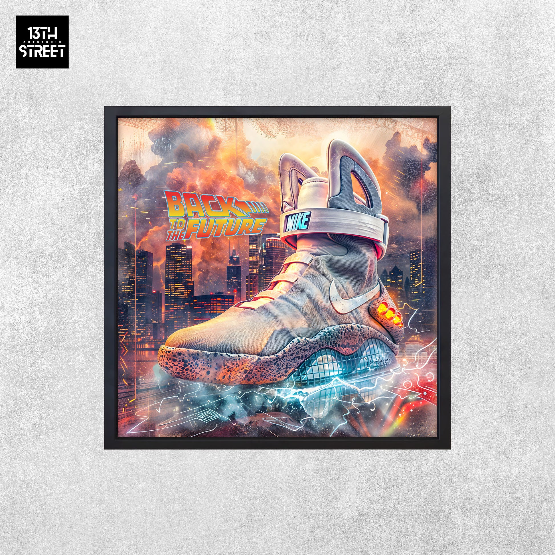 Discover " Nike Jordan by Back to the Future " by artist Thirteen . This visionary work fuses the futuristic spirit of Back to the Future with the iconic Nike Jordan silhouette, creating a piece that combines cinematic innovation with street art iconography. "Nike Jordan by Back to the Future" is a limited edition that brings a touch of nostalgia and dynamism to your collection, capturing the essence of time travel while celebrating the bold design of Jordans. Immerse yourself in the bold world of Thirteen, supported by the artistic community 13th Street Art . Transform your space with this work that embodies the perfect meeting of cult cinema and legendary Jordan style.
