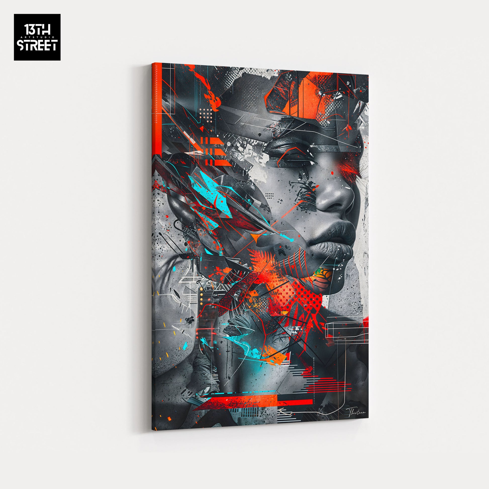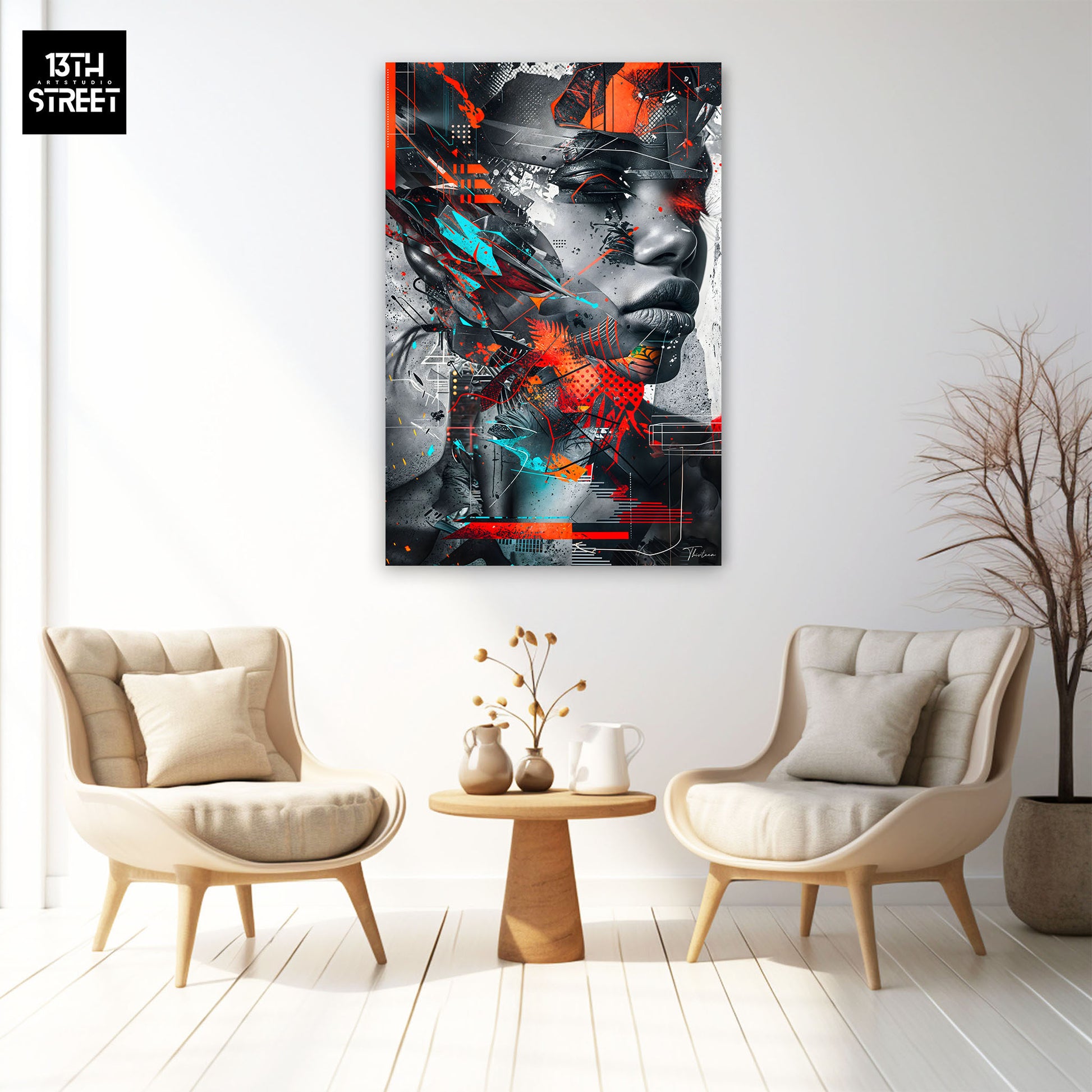 Discover " Oasis of Color " by artist Thirteen . This luminous portrait reveals a woman surrounded by an explosion of vibrant colors, creating a visual refuge of serenity and dynamism. "Oasis of Color" is an Artwork that infuses your space with invigorating energy and refreshing beauty. Immerse yourself in the vibrant world of Thirteen, supported by the artistic community 13th Street Art . Transform your interior with this work that invites you to discover a haven of colors and celebrate the richness and diversity of femininity.