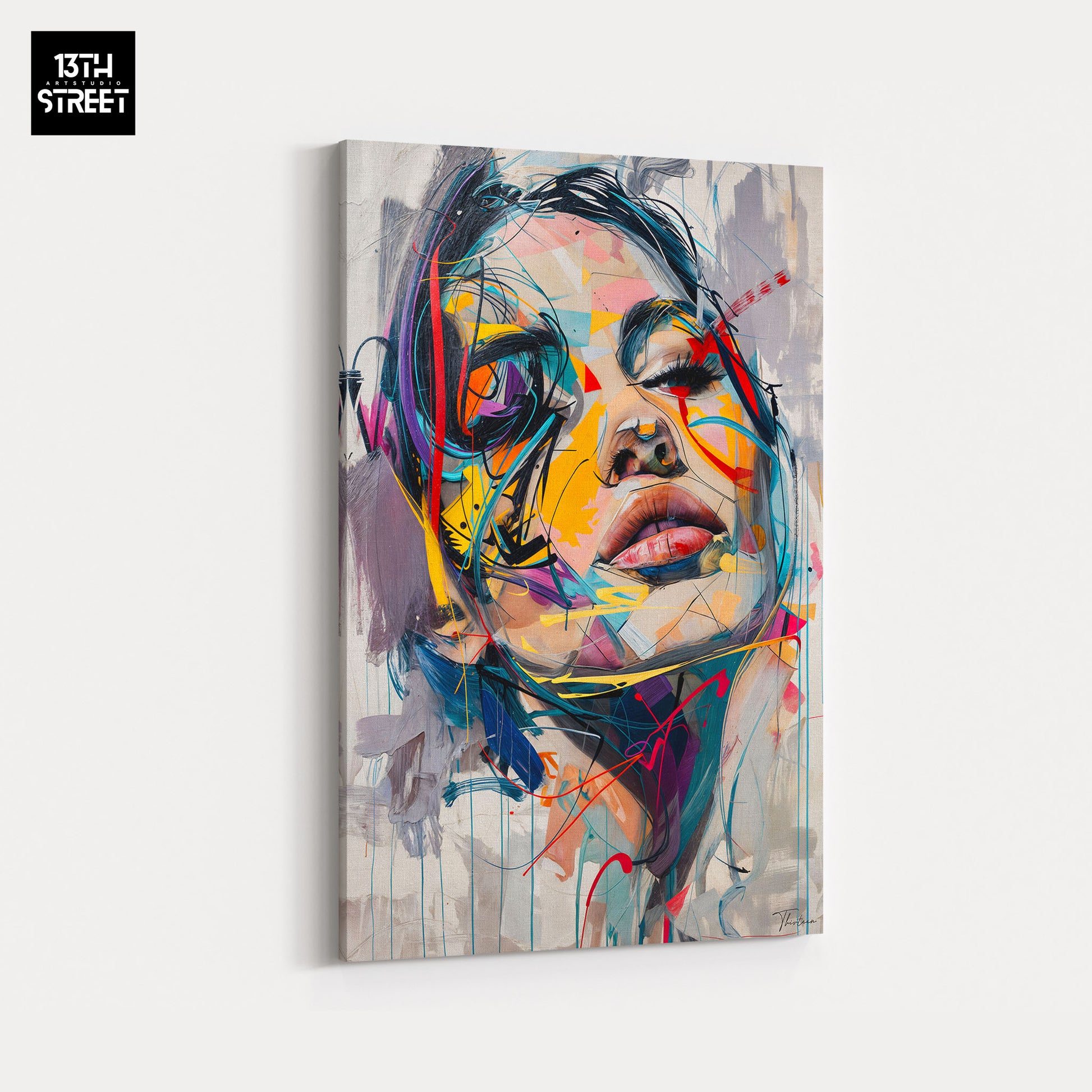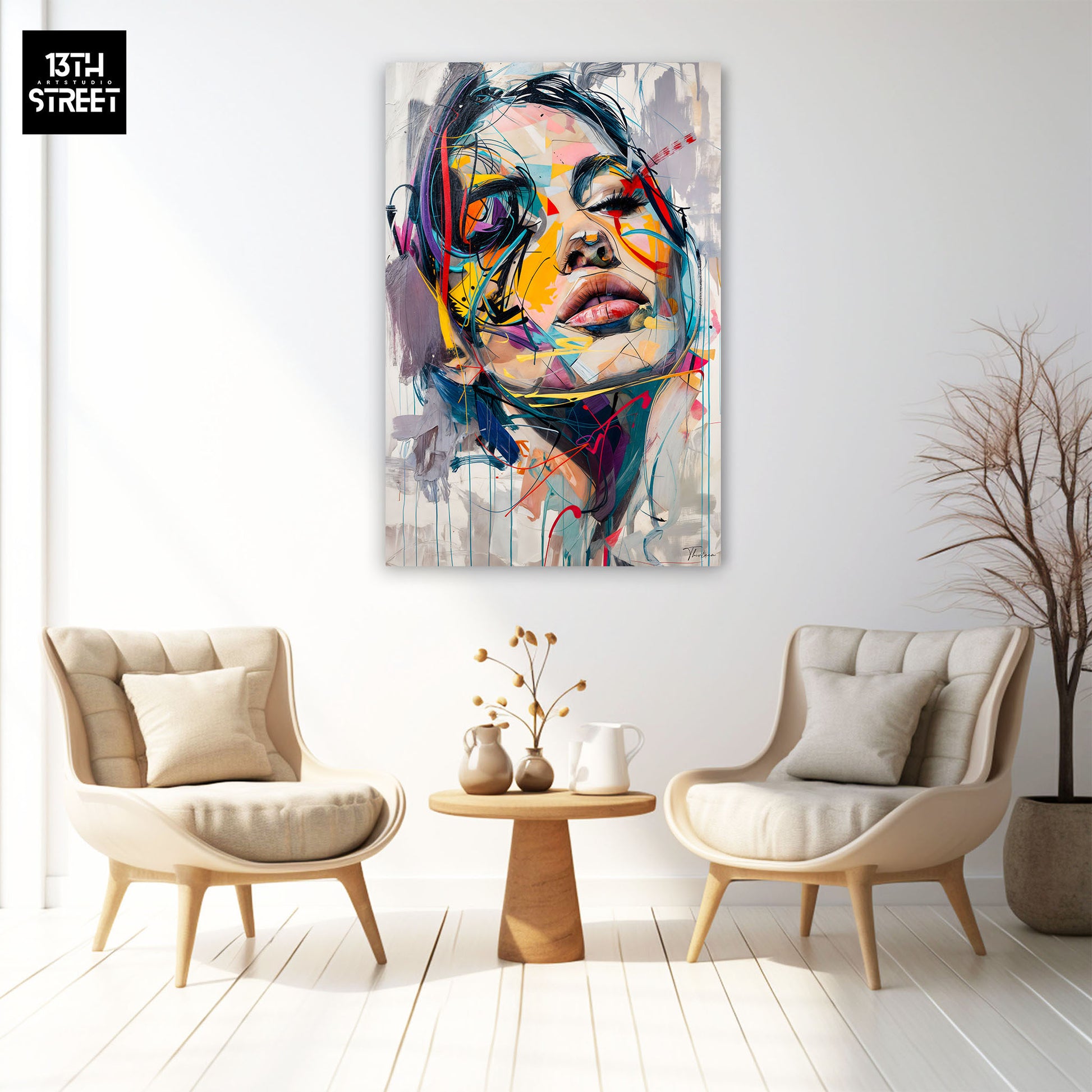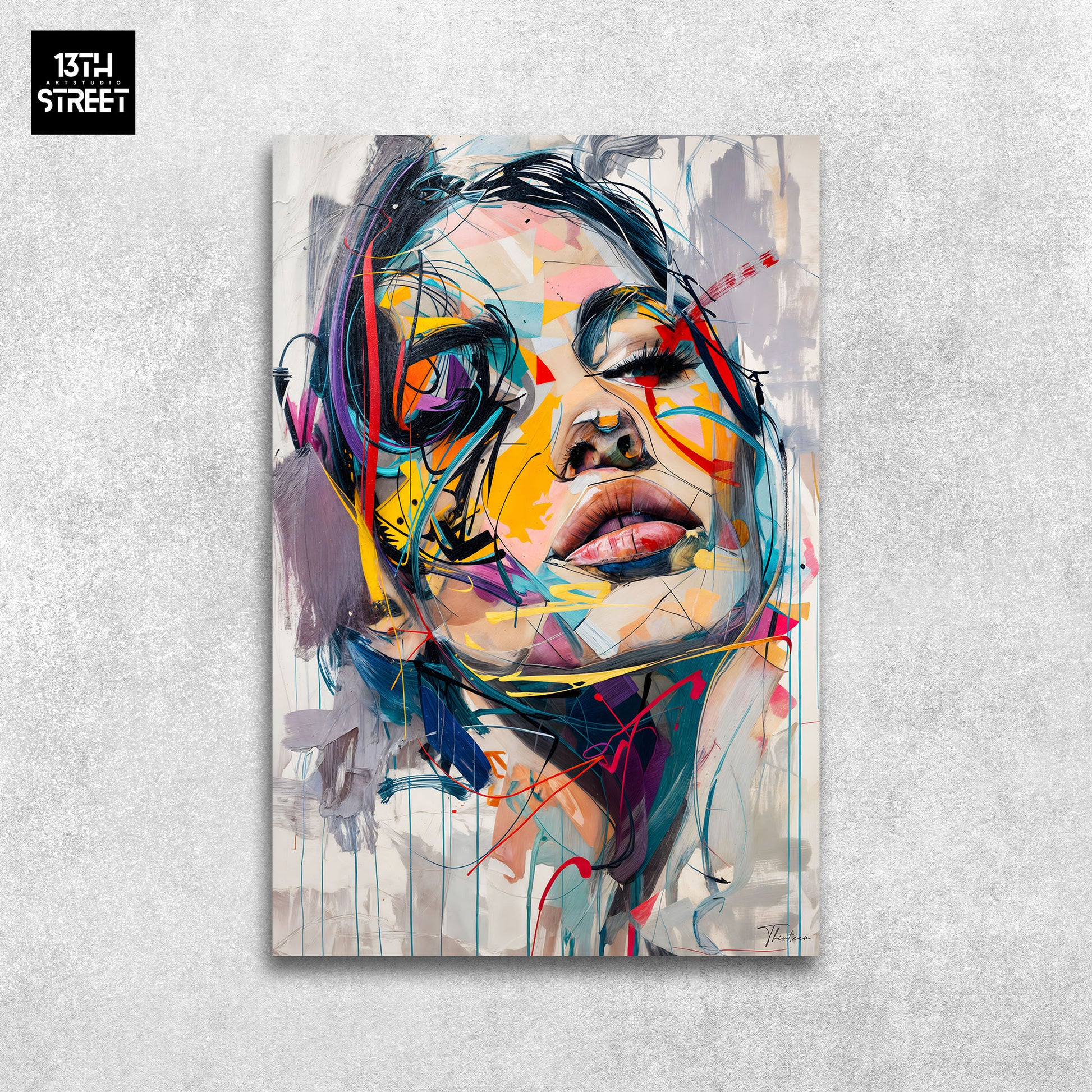 Discover " Colorful Waves " by artist Thirteen . This vibrant canvas captures the portrait of a woman where each hue and nuance creates a harmonious flow of color and emotion. "Colorful Waves" is an Artwork that brings an explosion of dynamism and poetry to your collection. Immerse yourself in the creative universe of Thirteen, supported by the artistic community 13th Street Art . Transform your space with this canvas that invites you to explore the depths of femininity through a burst of captivating colors.