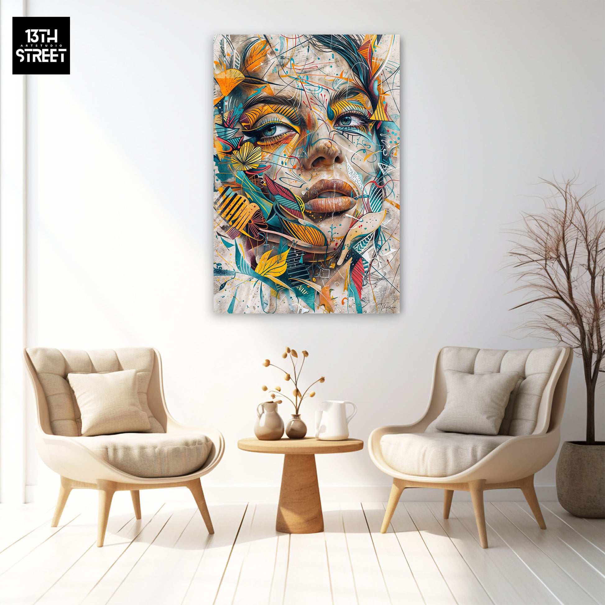 Discover " Rayonnement de Cléa " by artist Thirteen . This luminous portrait reveals a woman whose radiant aura seems to illuminate the space around her, capturing the essence of a bright and inspiring presence. "Rayonnement de Cléa" is an Artwork that infuses your space with vibrant energy and captivating elegance. Immerse yourself in the dazzling world of Thirteen, supported by the artistic community 13th Street Art . Transform your interior with this work that invites you to celebrate the brilliance and inner strength of femininity.