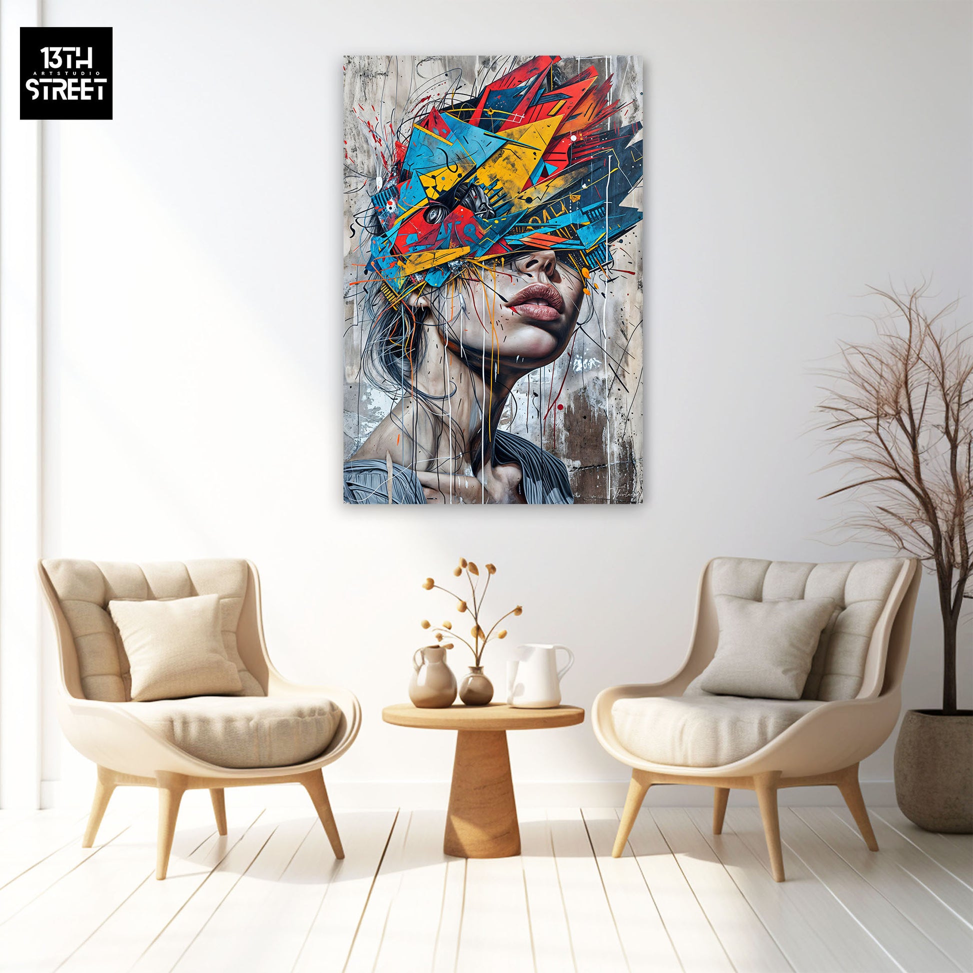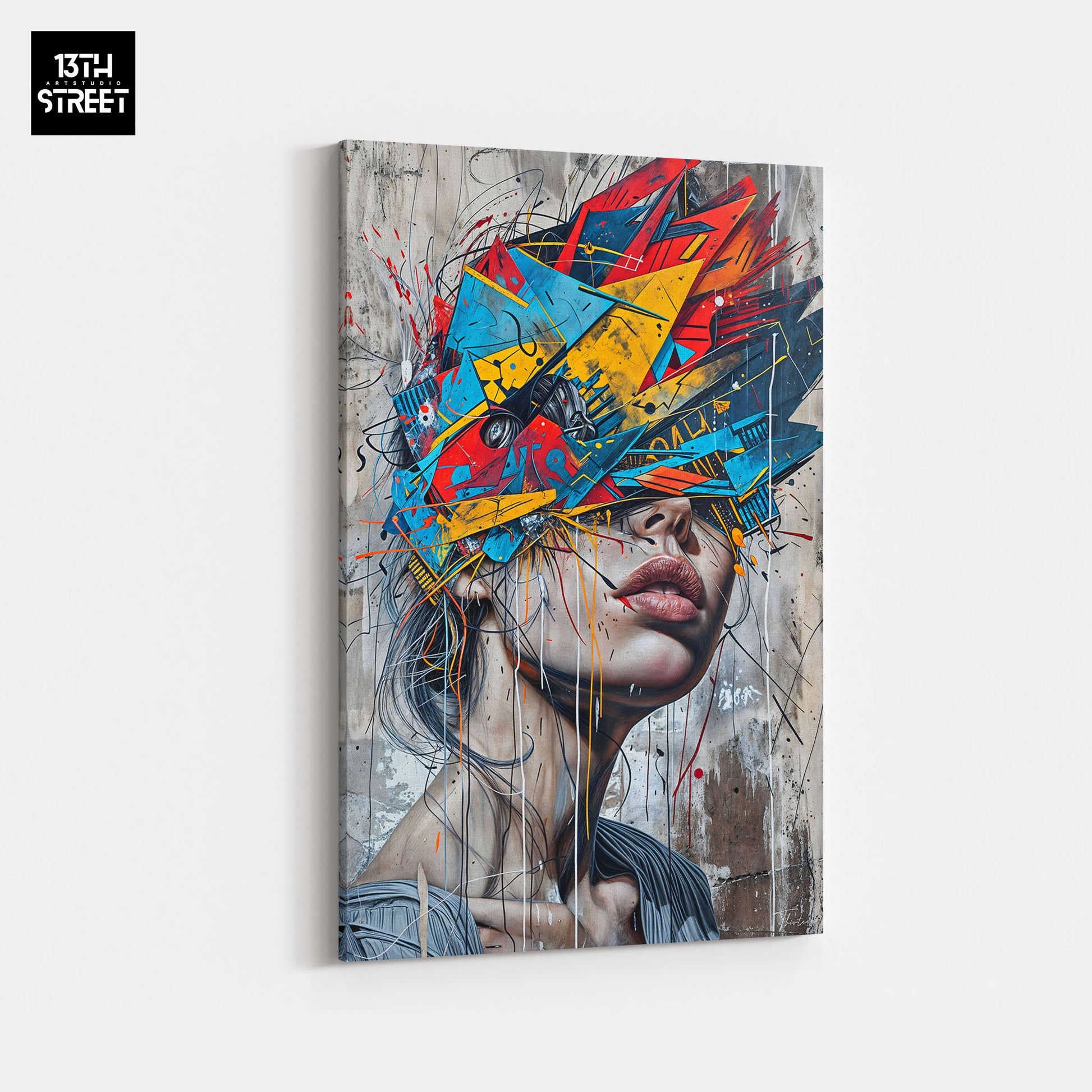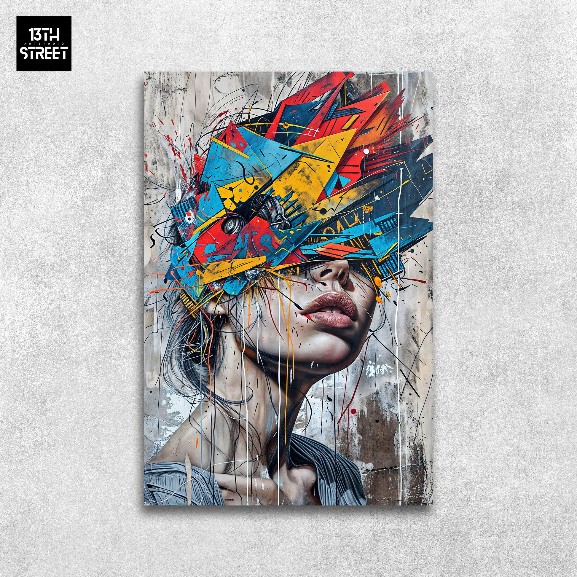 Discover " Vibration of Spirit " by artist Thirteen . This striking portrait reveals a woman whose expression and colors seem to resonate like a visual melody, capturing the essence and depth of her spirit. "Vibration of Spirit" is an Artwork that infuses your space with spiritual energy and emotional intensity. Immerse yourself in the captivating world of Thirteen, supported by the artistic community 13th Street Art . Transform your home with this work that invites you to explore the subtle vibrations of thought and the nuances of femininity.