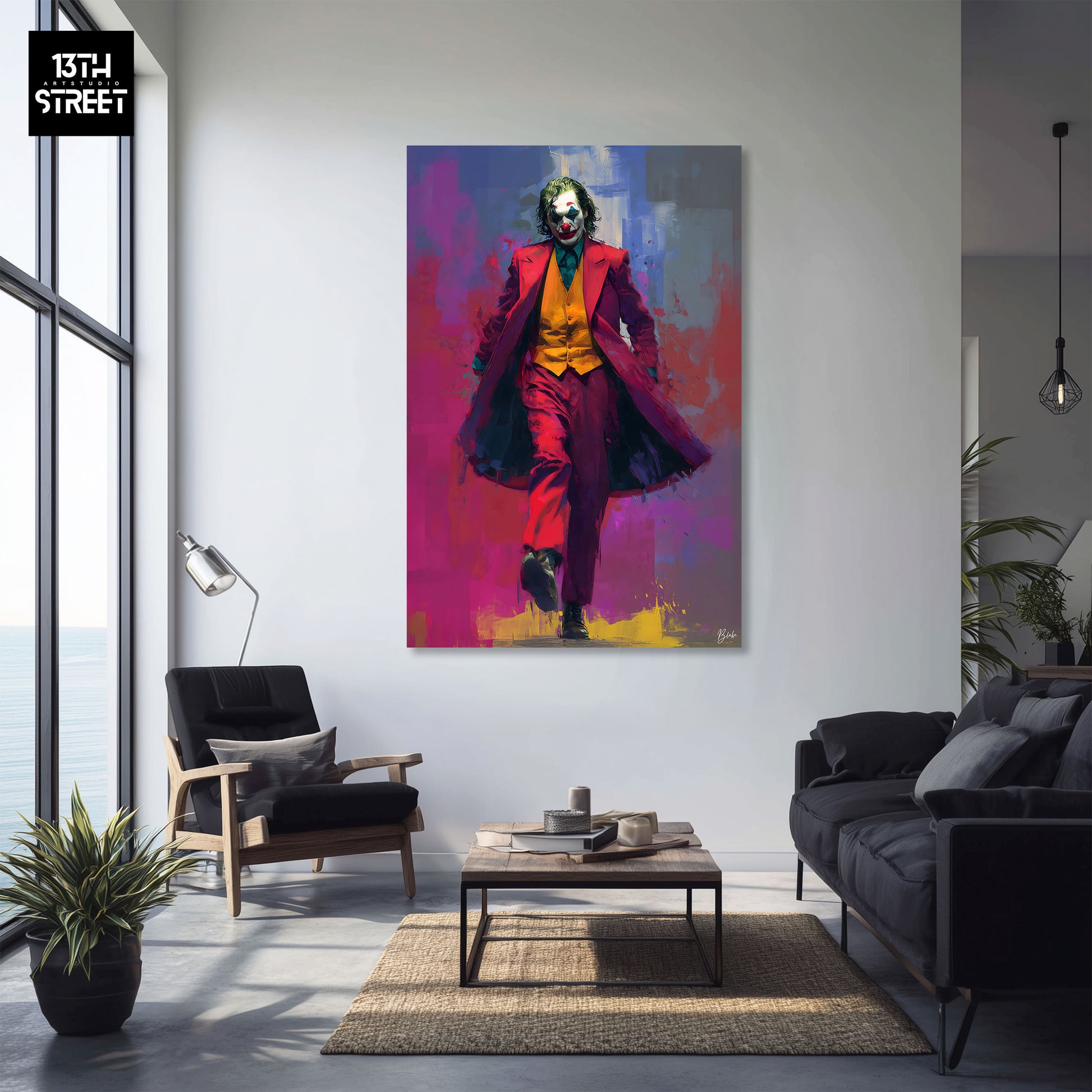 Découvrez "Joker Carnival of Pain" par l’artiste Blake. À travers le portrait en mouvement de Joker, l’artiste met en scène une posture élégante et affirmée, presque aristocratique. La démarche est charismatique, maîtrisée, transformant le personnage en figure magnétique dont la présence impose naturellement l’attention.