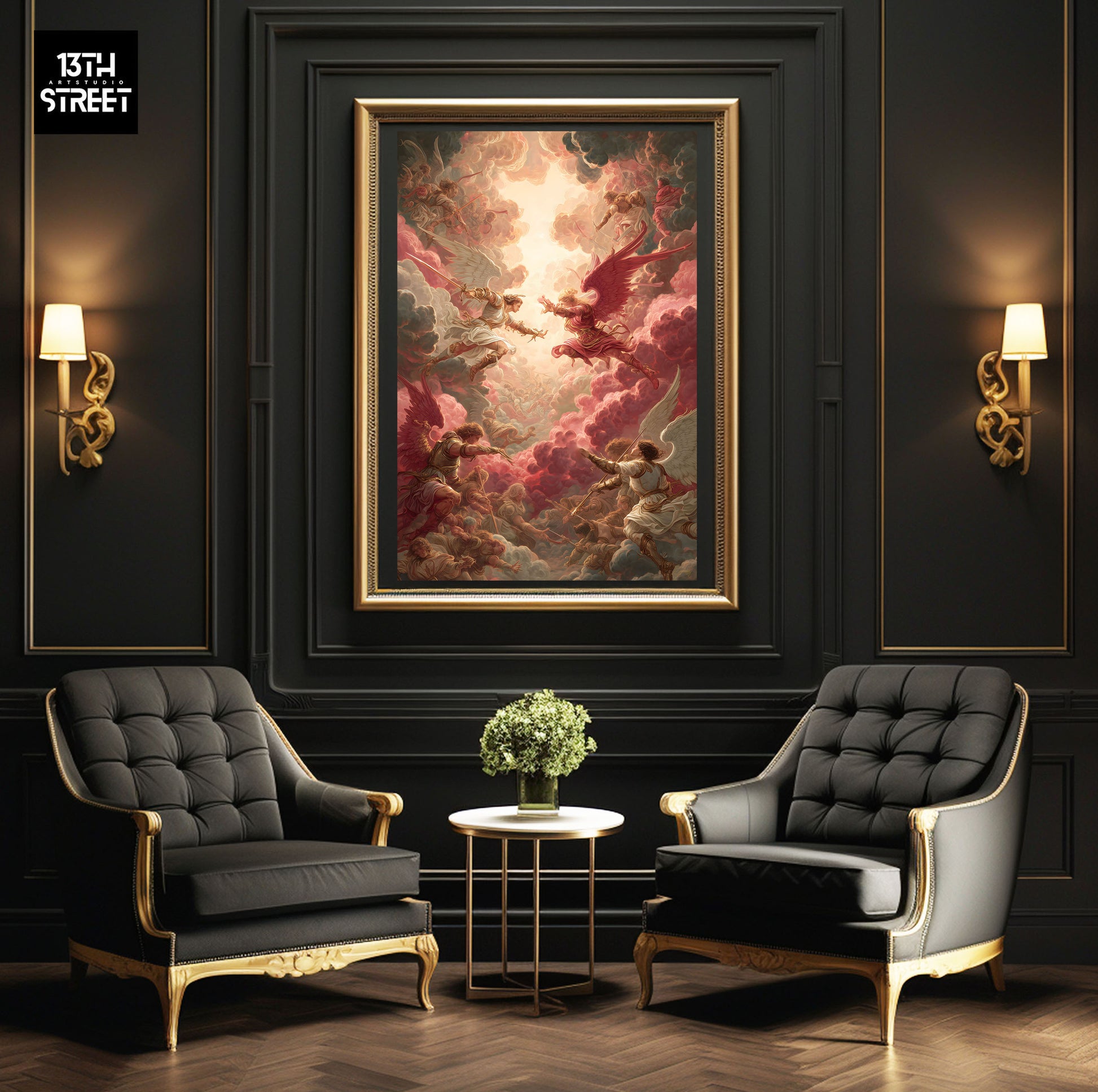 "Les Veilleurs du Paradis" est une Œuvre Artistique, apportant noblesse et intensité symbolique à votre collection. Plongez dans l’univers singulier de Davinsky, soutenu par la communauté créative de 13th Street Art, et laissez cette création instaurer dans votre intérieur une aura majestueuse, digne des grandes fresques célestes réinterprétées.