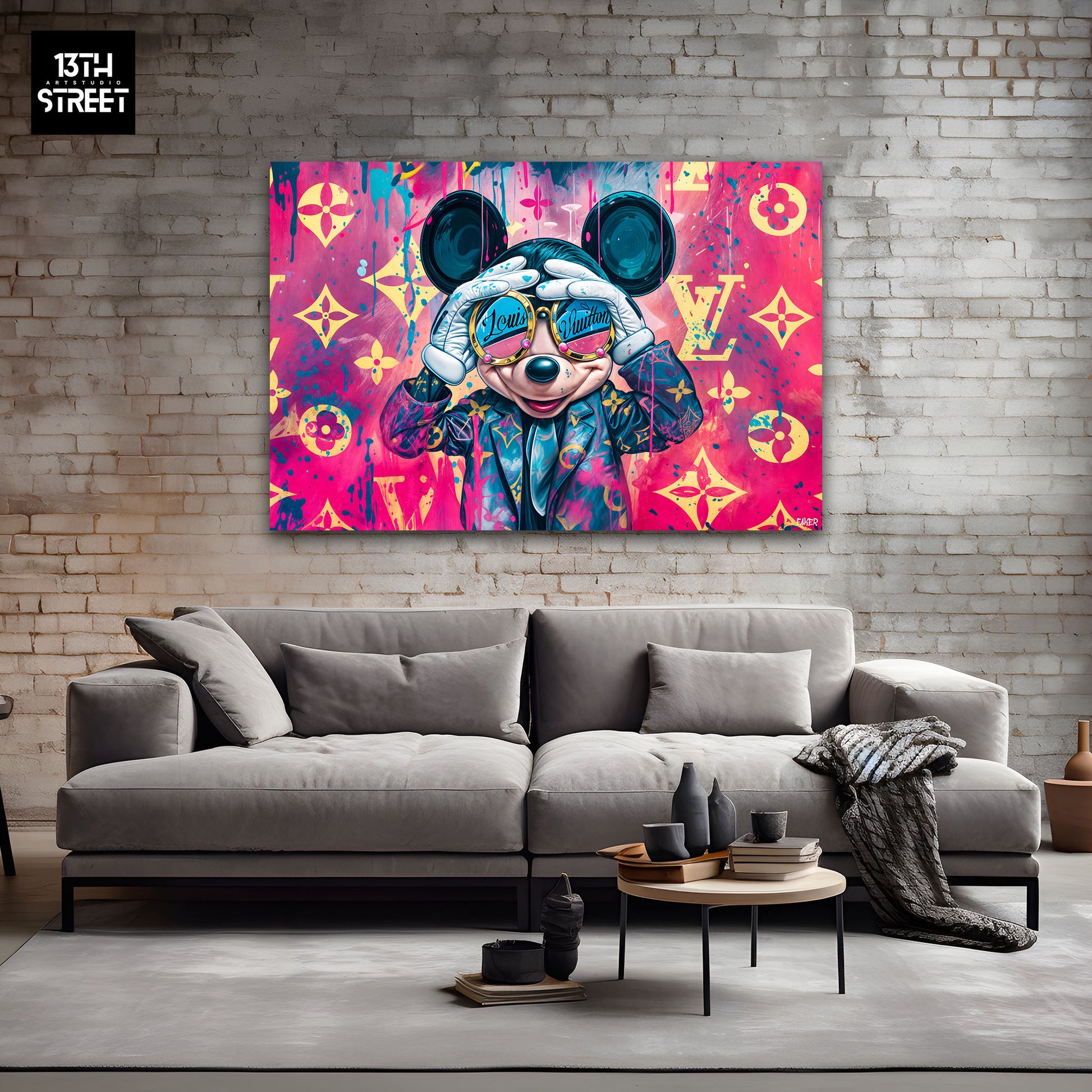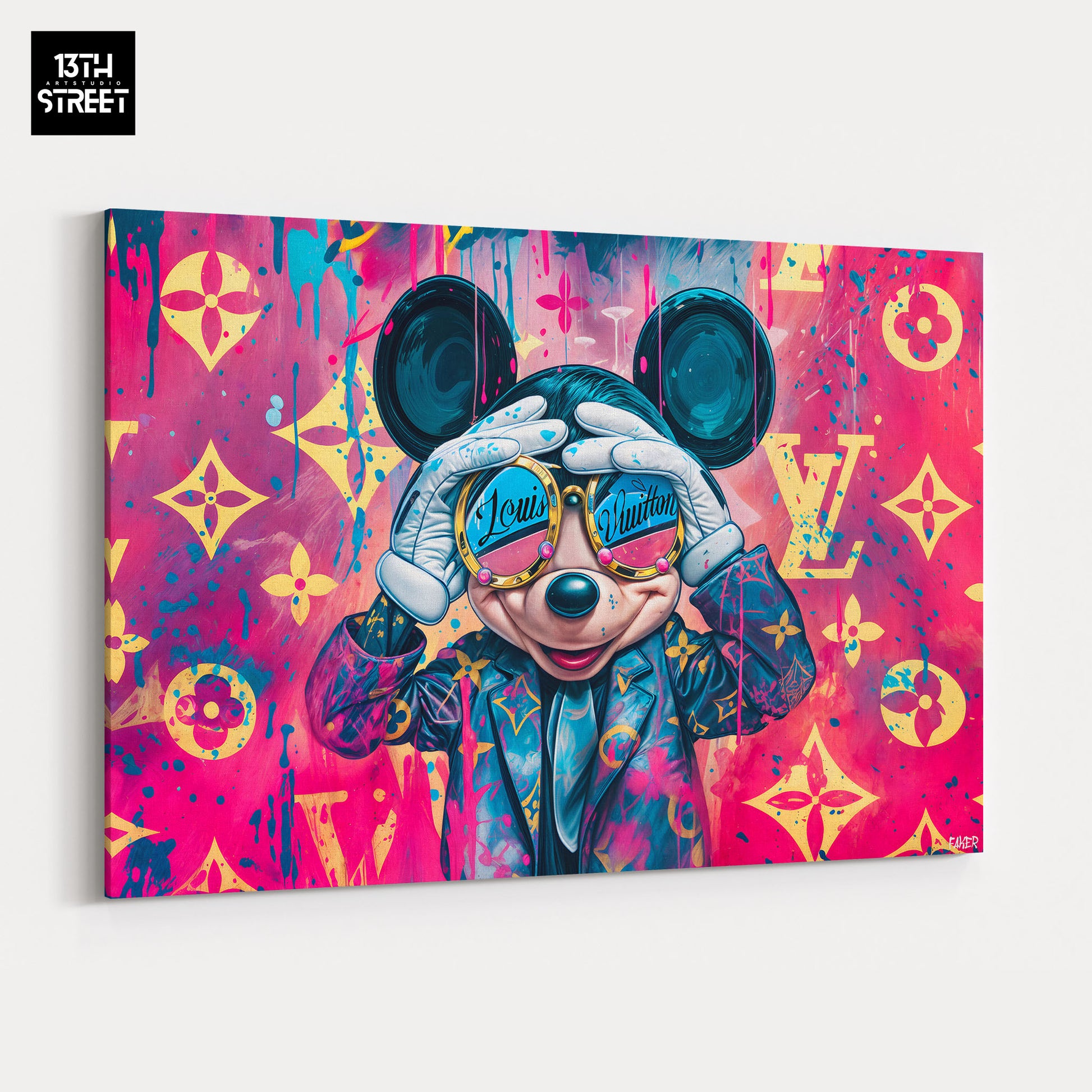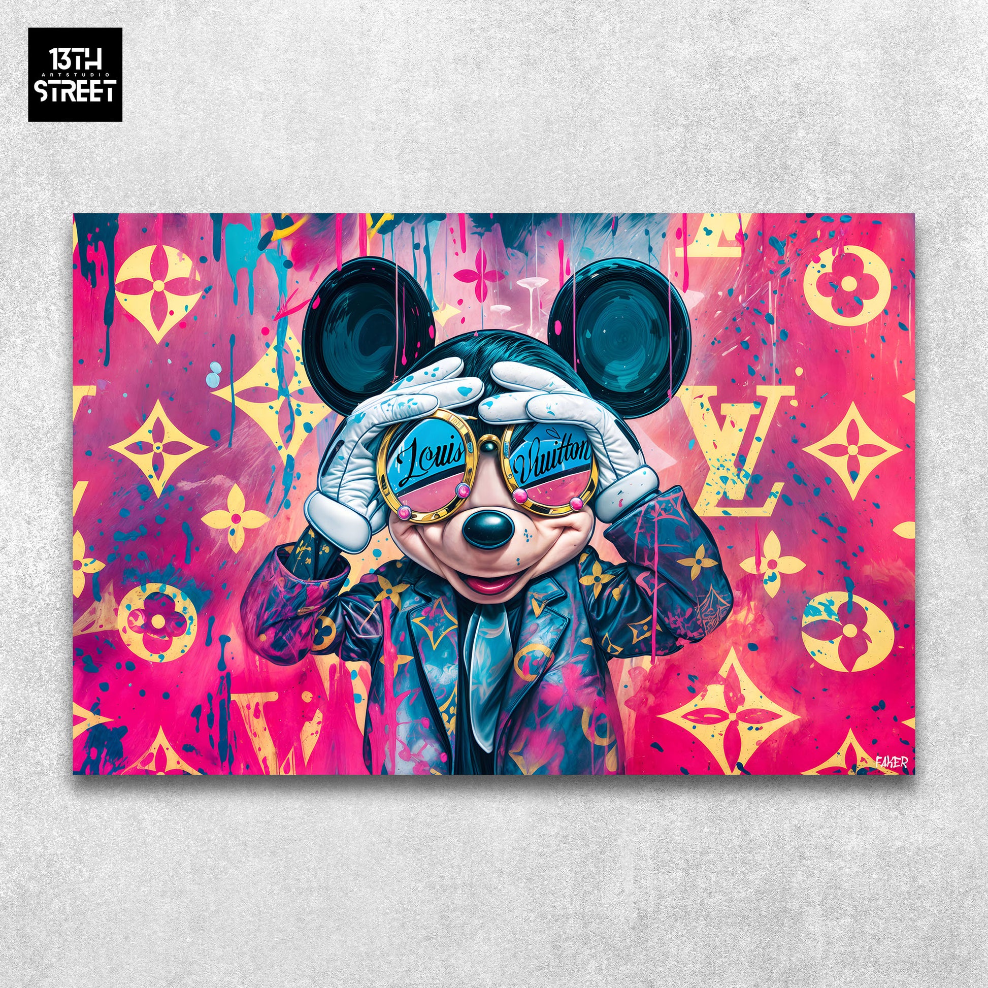 Découvrez "Mickey By Louis Vuitton" par l'artiste Faker. Dans cette œuvre, l'emblématique Mickey Mouse se transforme en icône de luxe, fusionnant l'univers pop de l'animation avec l'élégance intemporelle de Louis Vuitton. À travers des motifs de la célèbre marque de haute couture, Faker réinvente Mickey en symbole de style et de sophistication. Les touches street art apportent une fraîcheur urbaine à cette réinterprétation moderne. "Mickey By Louis Vuitton" est une Œuvre Artistique qui associe humour, culture pop et haute mode, offrant une pièce aussi élégante que provocatrice à votre collection. Plongez dans l’univers créatif de Faker, soutenu par la communauté artistique 13th Street Art, et laissez-vous séduire par cette collision entre luxe et légèreté.