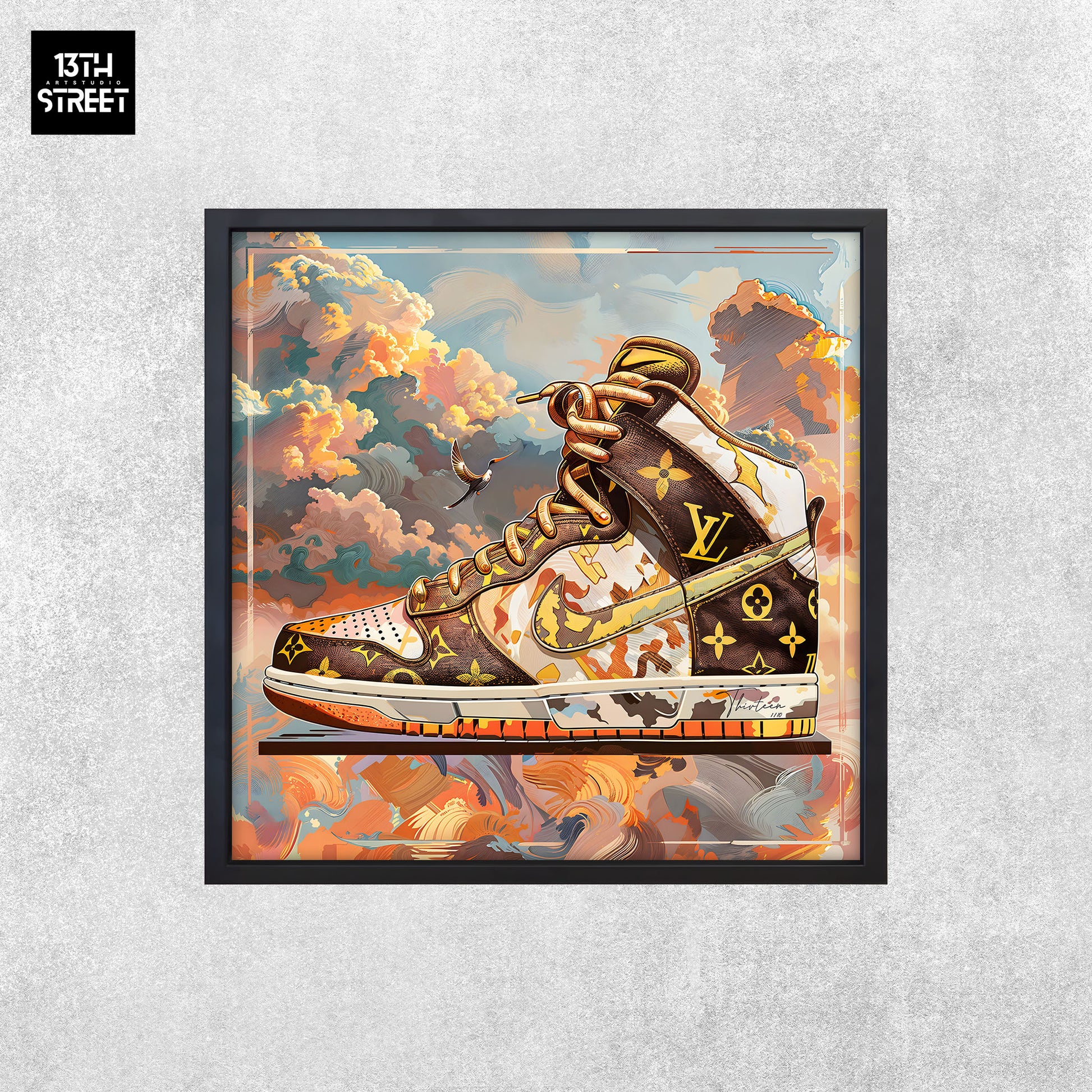 Découvrez "Nike Jordan by Louis Vuitton" par l'artiste Thirteen. Cette œuvre remarquable fusionne le luxe emblématique de Louis Vuitton avec la silhouette iconique des Nike Jordan, créant une pièce qui marie l’élégance sophistiquée et le style urbain moderne. "Nike Jordan by Louis Vuitton" est une édition limitée qui ajoute une touche de prestige et de raffinement à votre collection, capturant l'allure intemporelle de Louis Vuitton tout en célébrant le design emblématique des Jordan. Plongez dans l’univers audacieux de Thirteen, soutenu par la communauté artistique 13th Street Art. Transformez votre espace avec cette œuvre qui incarne la rencontre parfaite entre le luxe haute couture légendaire.